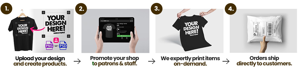 Share with your fans and we handle the rest. Items are custom-printed and delivered directly to customers.