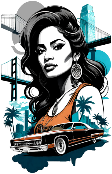 Lowrider style art is a vibrant, eye-catching visual expression that blends elements of graffiti, muralism, and vehicle customization, characterized by vibrant colors, complex patterns, and minute details.