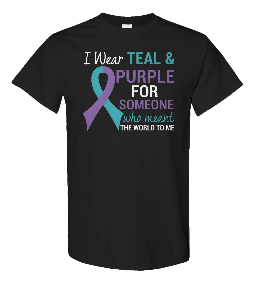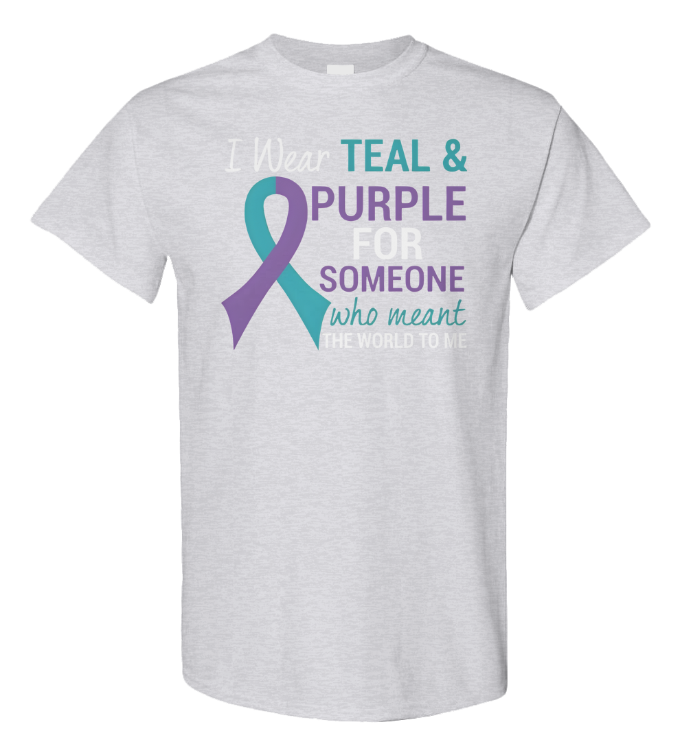 Honor and remember someone who meant everything with this meaningful awareness ribbon t-shirt. Featuring a purple and teal ribbon design, it represents love, remembrance, and support for causes close to the heart. A touching way to show strength, solidarity, and carry their memory with you every day.
