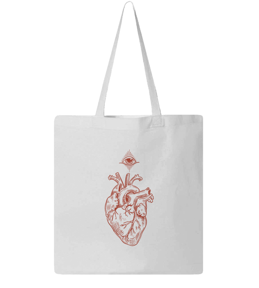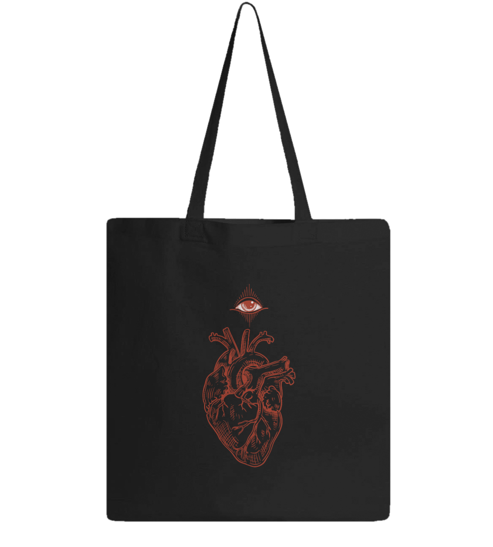 Anatomical Heart w/ Eye Tote Bag - black, white