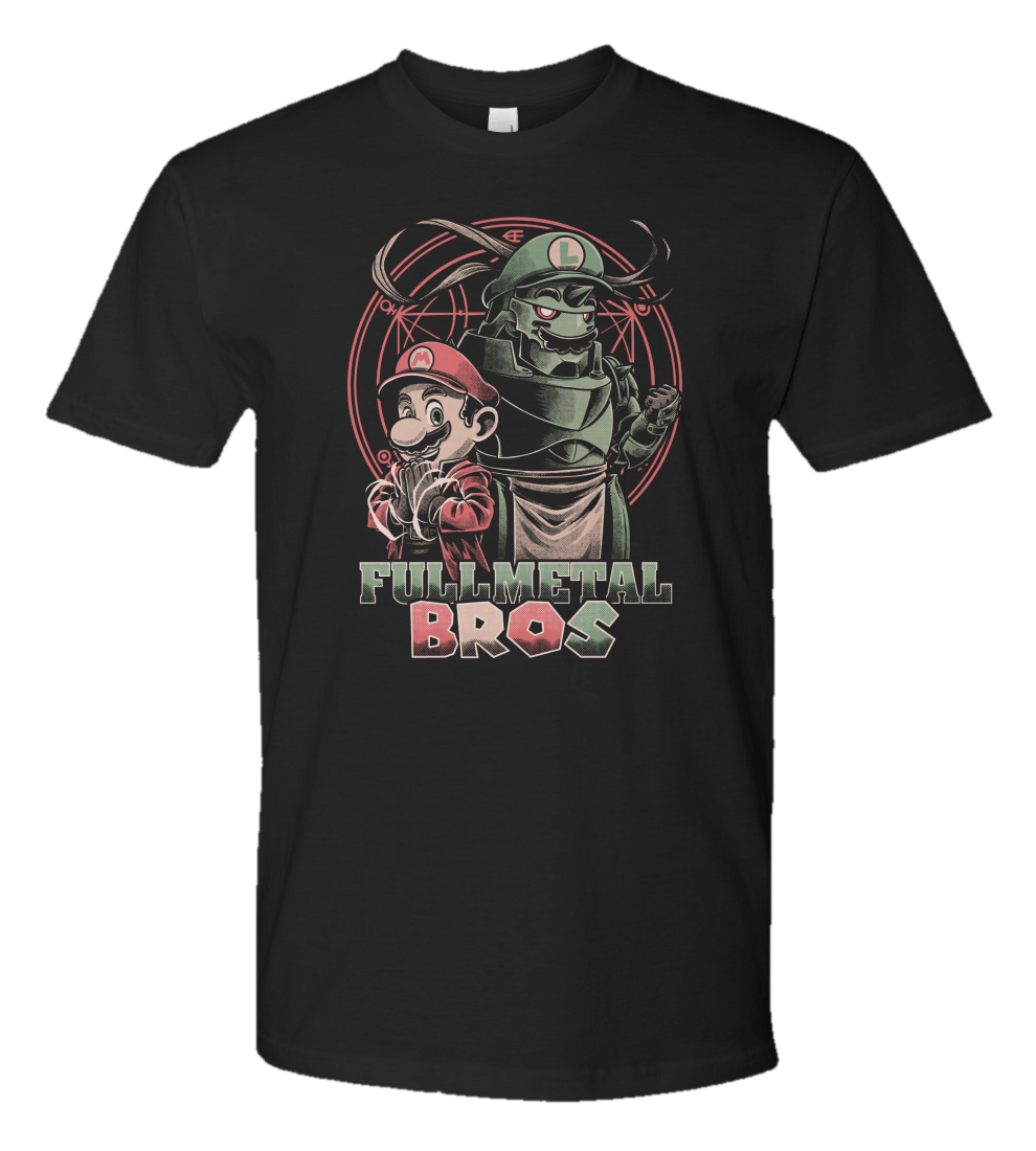 This cool and awesome t-shirt is perfect for those who love video games, anime, manga, RPG, fantasy, and alchemy. Featuring two military alchemist brothers with the quote "Fullmetal Brothers".