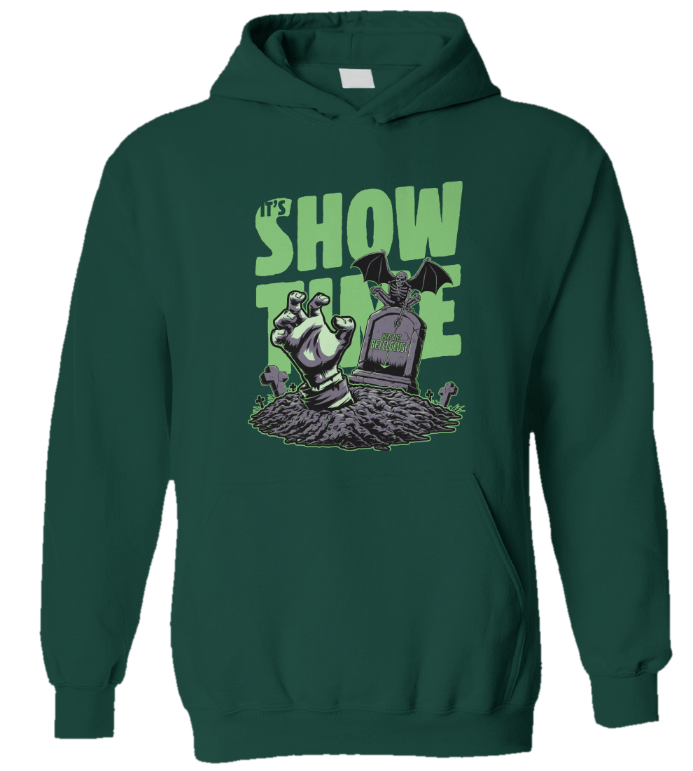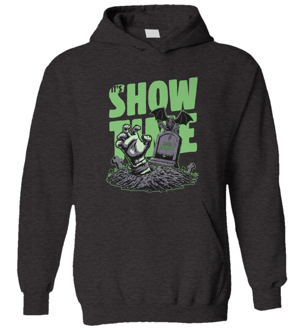 This cool and awesome t-shirt is perfect for those who love TV shows, ghost stories, summoning demons, and classic vintage horror movies. Featuring a goth creepy dead zombie ghost exorcist coming out of his grave. With his catchphrase "It's showtime".