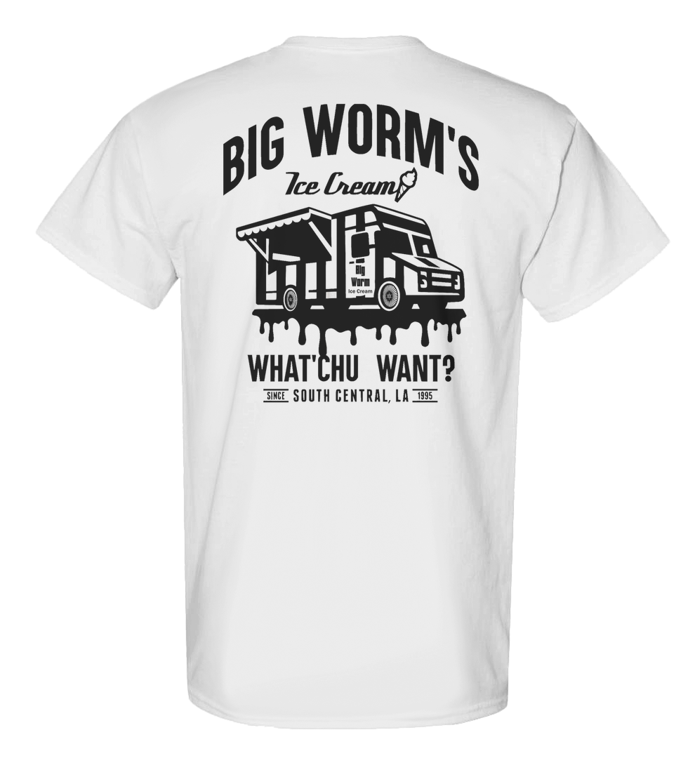 Jump in the ride with the iconic BIG WORM'S ICE CREAM TRUCK T-Shirt. Featuring the classic 90s Movie FRIDAY.