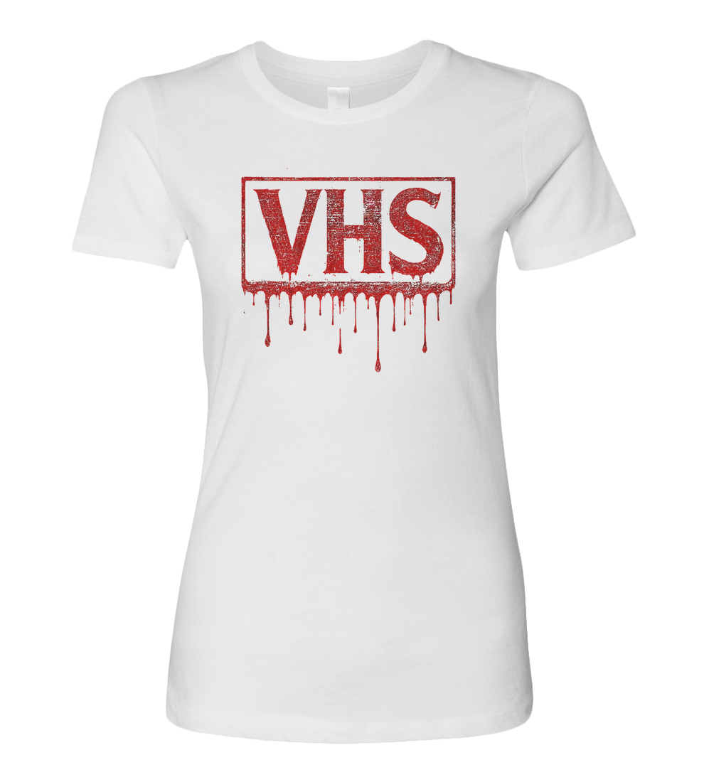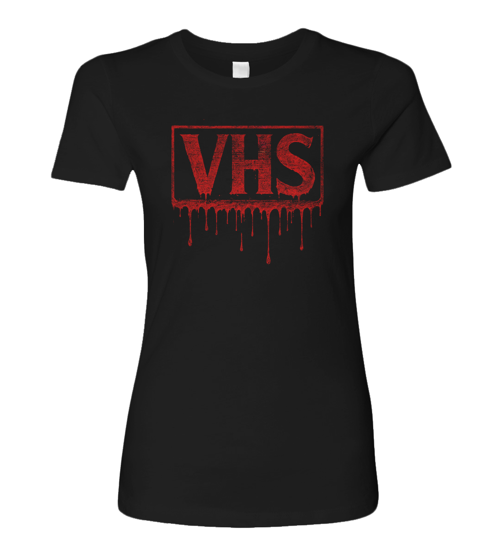 Rewind if you dare. This blood-dripping VHS tee is pure 80s horror nostalgiagritty, grimy, and soaked in terror. With a bold, bleeding red logo that looks like it crawled out of a haunted video store, this shirt is a love letter to slasher flicks, late-night rentals