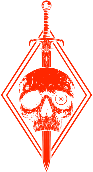 A decomposing battle hardened skull and sword