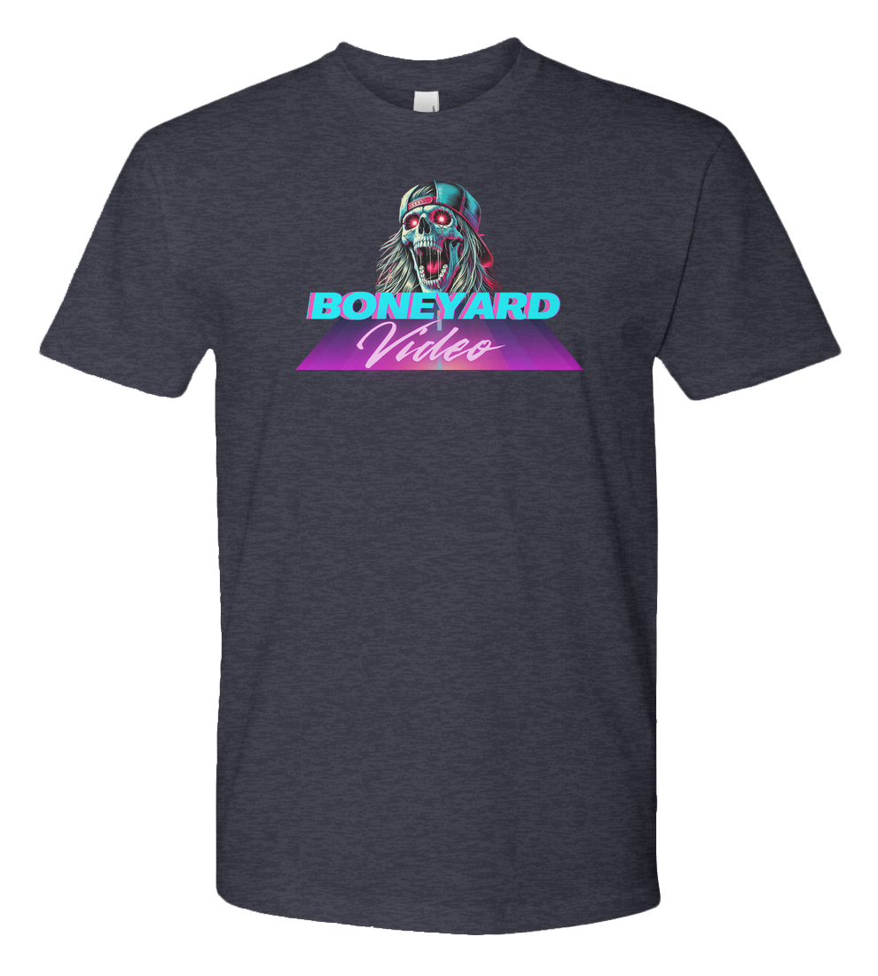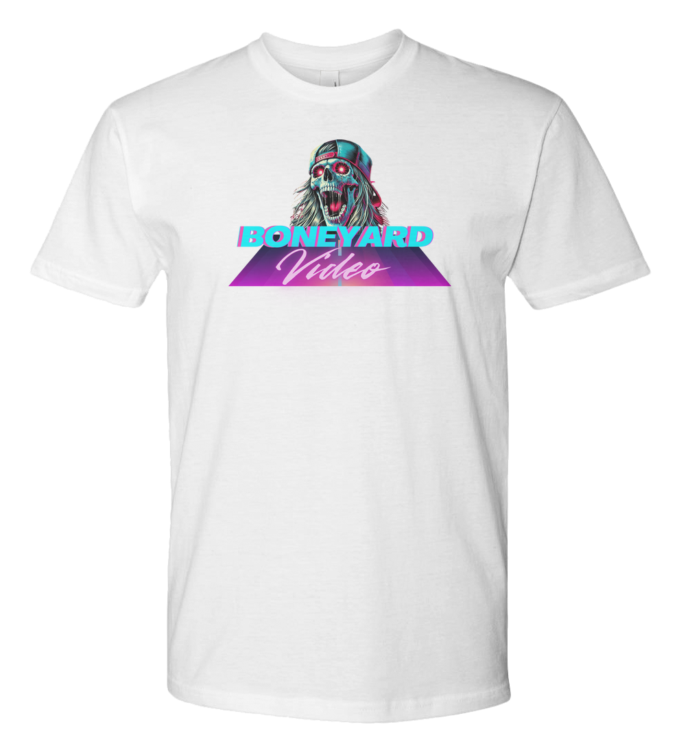 Crank up the neon and unleash the undead! This killer tee from Boneyard Video features our zombified clerk the dude mid-scream with retro synthwave vibes dripping off every pixel. Screaming skull, glowing eyes, and a blast of 80s horror nostalgiathis shirt is pure VHS chaos. Wear it loud. Wear it proud. Wear it... if you dare.