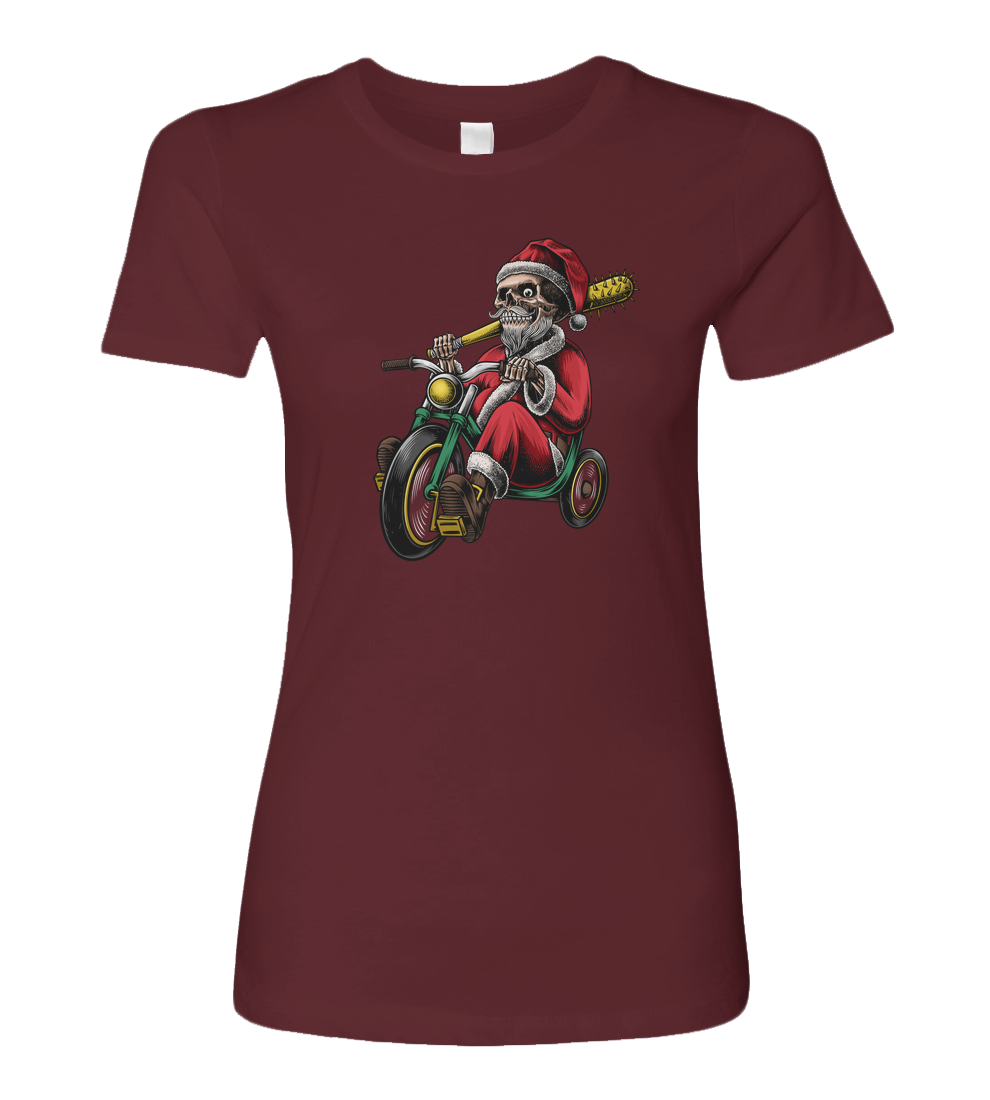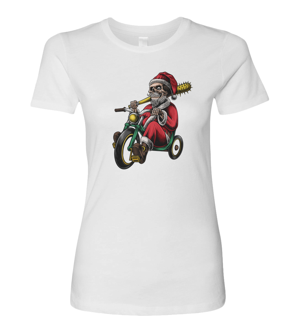 Born to be wild, forced to ride a tricycle. This badass skeleton Santa is coming to town to settle the score on the naughty list. A perfect design for those who like their Christmas with a little bit of grit and humor.