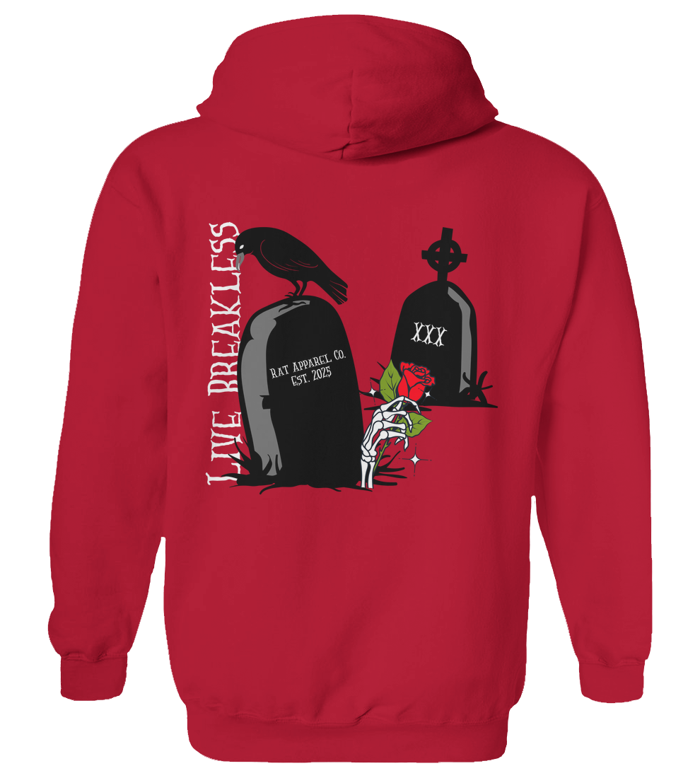 Ride with attitude and live without limits. The Live Breakless hoodie captures the raw energy of BMX culture with bold front and back graphics that speak to fearless riders. Made from soft, breathable cotton, this shirt keeps you comfortable whether youre on the track, in the park, or just chilling with the crew. The front features a minimalist hand-and-rose design, while the back showcases striking artwork symbolizing the spirit of riding beyond boundaries.