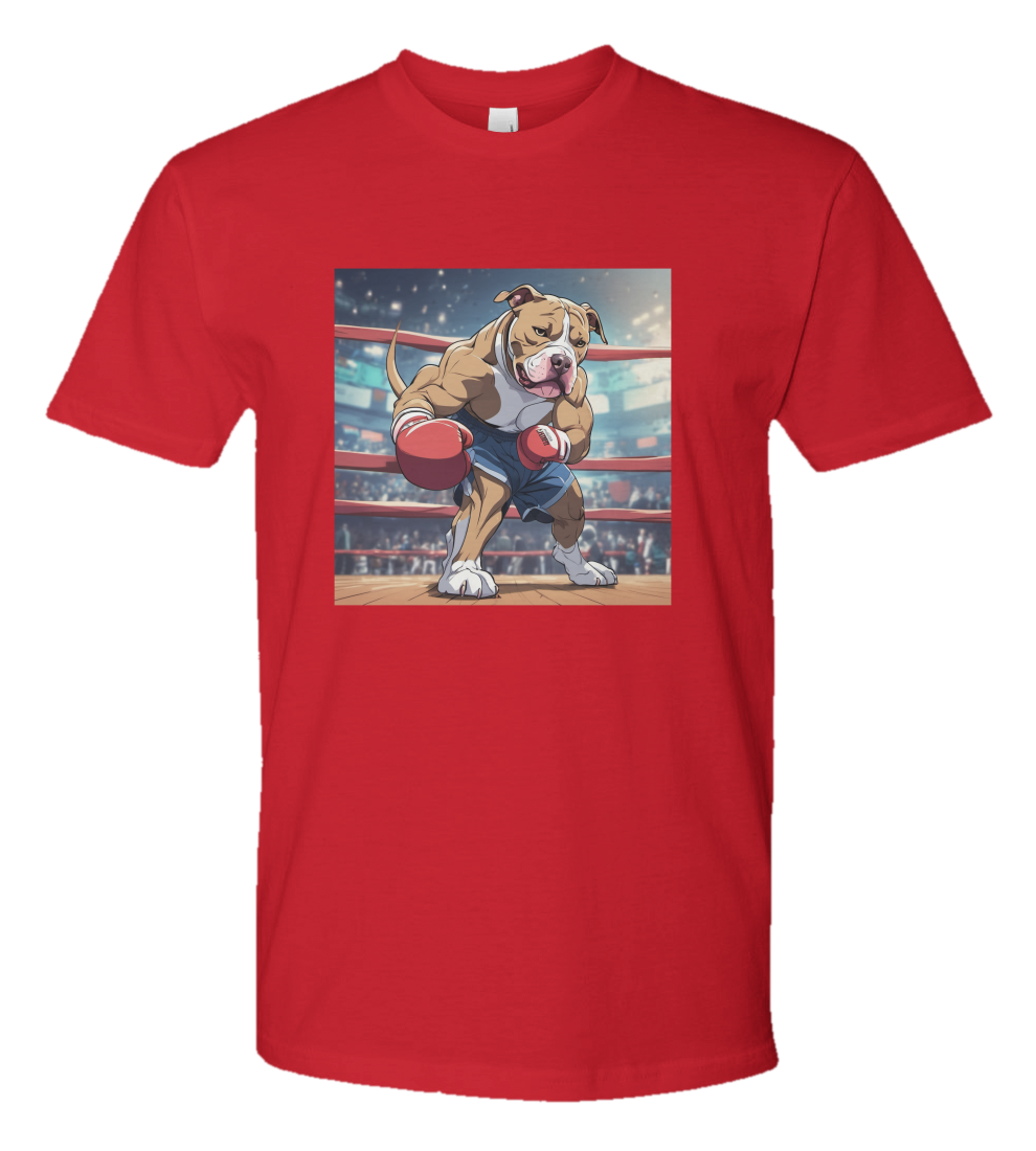 This captivating illustration showcases a powerful and determined bulldog boxer in the midst of a thrilling boxing match. The image depicts the bulldog standing tall and confident in the center of a traditional boxing ring, ready to take on any opponent that comes his way. With its muscular physique and intense expression, the bulldog exudes strength and tenacity, embodying the spirit of a true fighter. The attention to detail in this artwork is remarkable, capturing the essence of the boxing ring with its ropes, corner posts, and the energetic atmosphere that surrounds it. Whether you are a fan of boxing or simply appreciate the beauty of animal illustrations, this T-shirt is sure to make a striking addition for anyone who loves bulldogs.