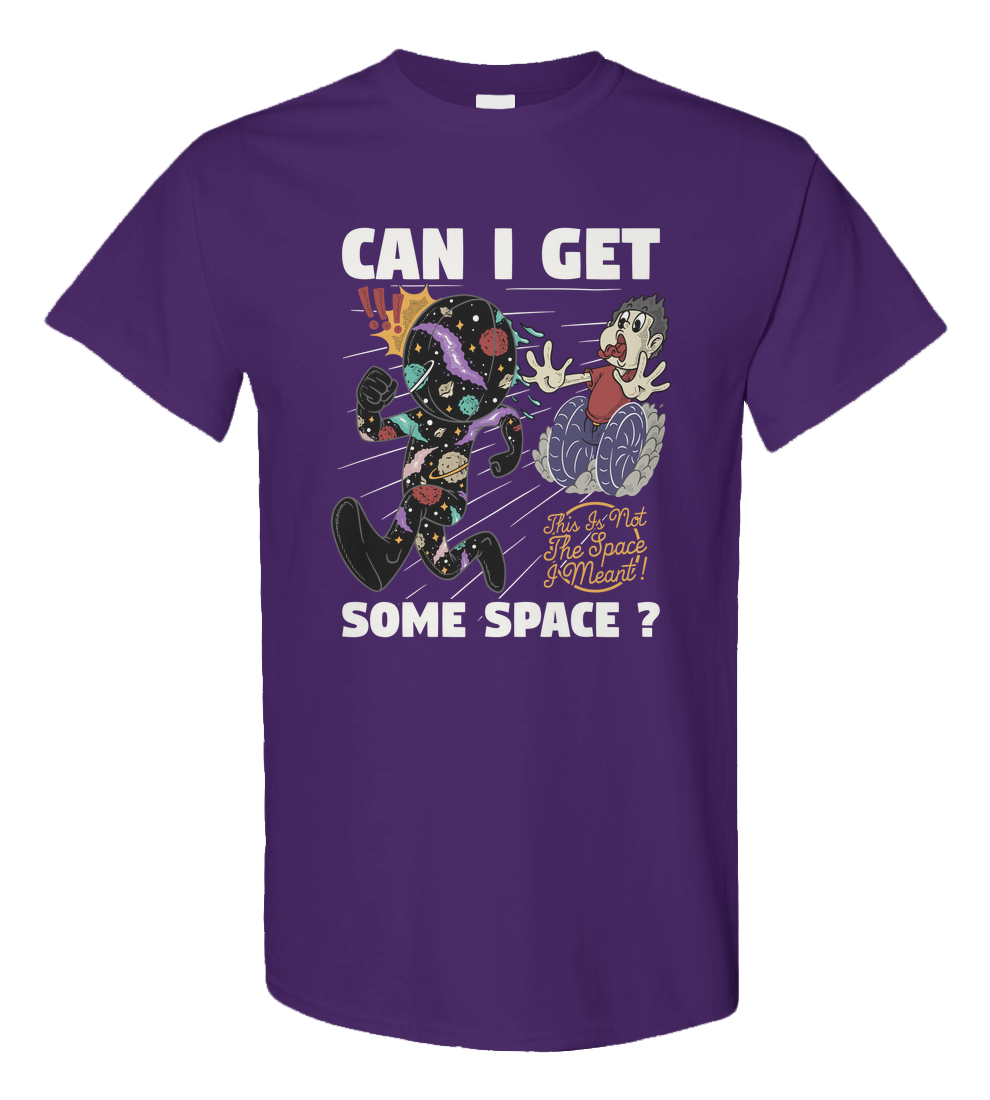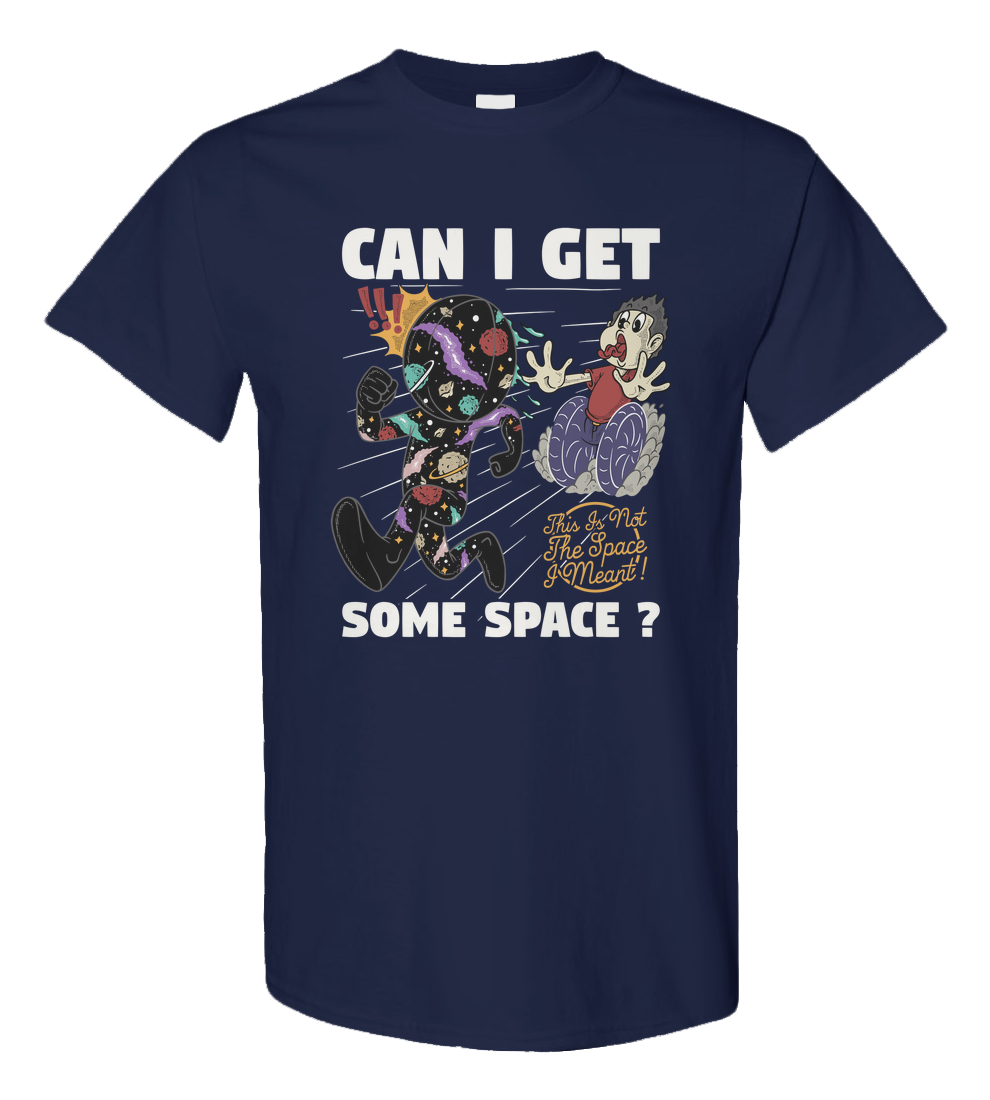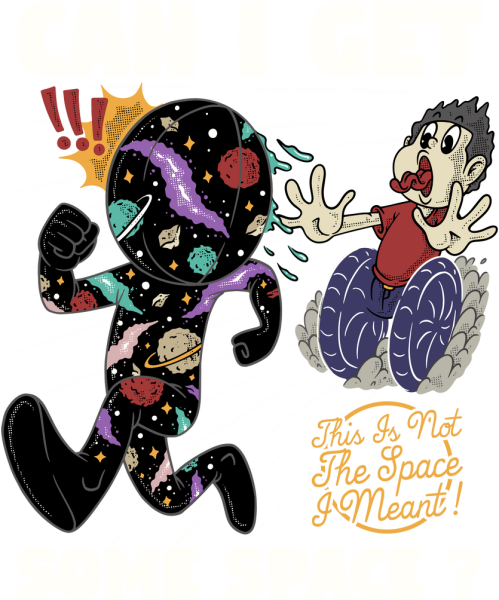 A funny retro cartoon illustration about personal space taken too literally. A cosmic character chasing someone through space with a sarcastic twist. Perfect for introverts, space lovers, and anyone who just needs a little breathing room.