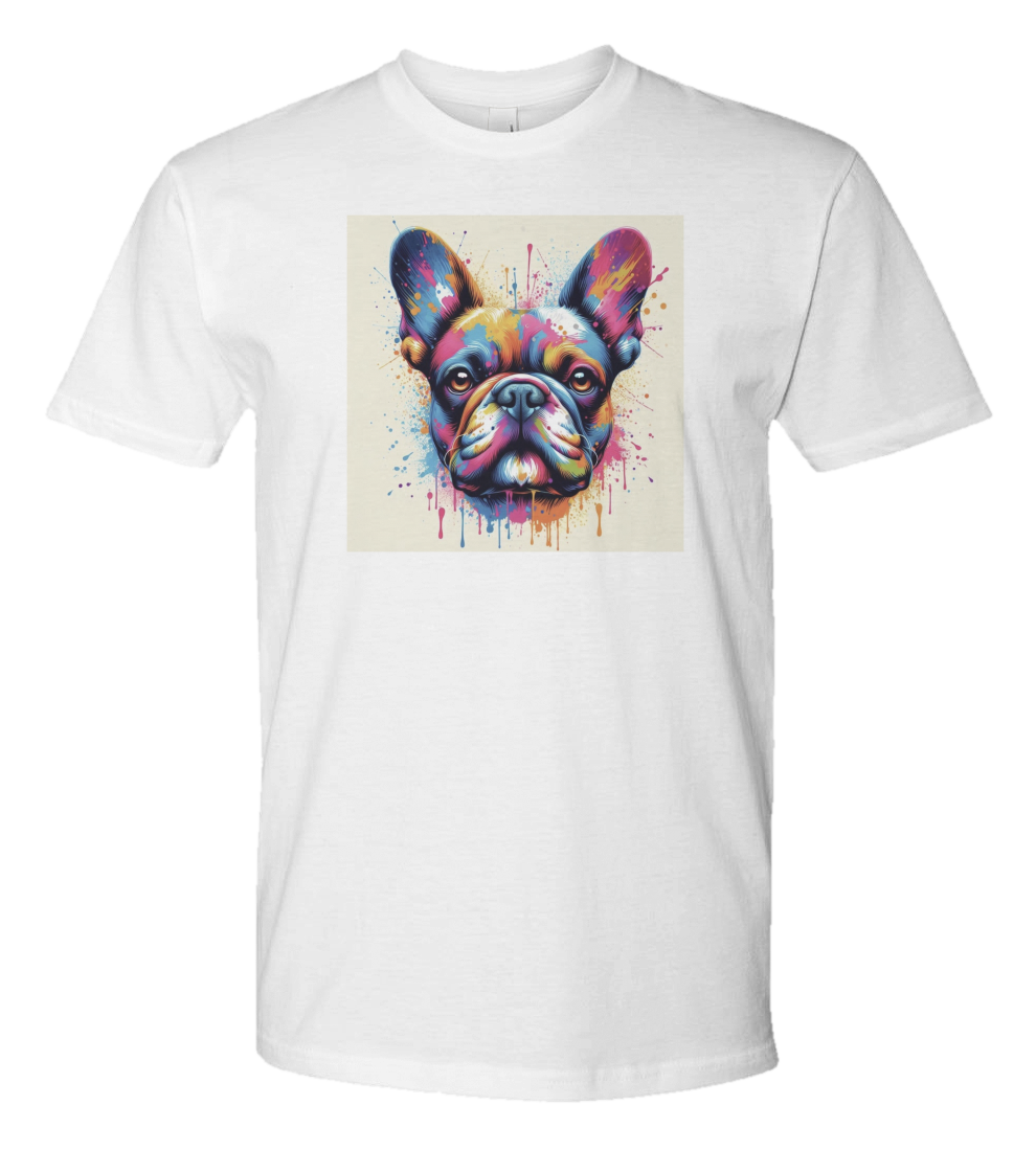 Get ready to meet our vibrant and stylish black t-shirt, showcasing a colorful French Bulldog design! This eye-catching shirt is a must-have for all dog lovers looking to flaunt their affection for this adorable breed in a fun and unique manner. The front of the shirt features a lively French Bulldog face, adorned with playful color splatters that bring a modern and artistic flair to the design. Crafted from top-notch materials, this t-shirt is not only fashionable but also incredibly comfortable for all-day wear. Get ready to turn heads and make a statement with this fabulous French Bulldog t-shirt!