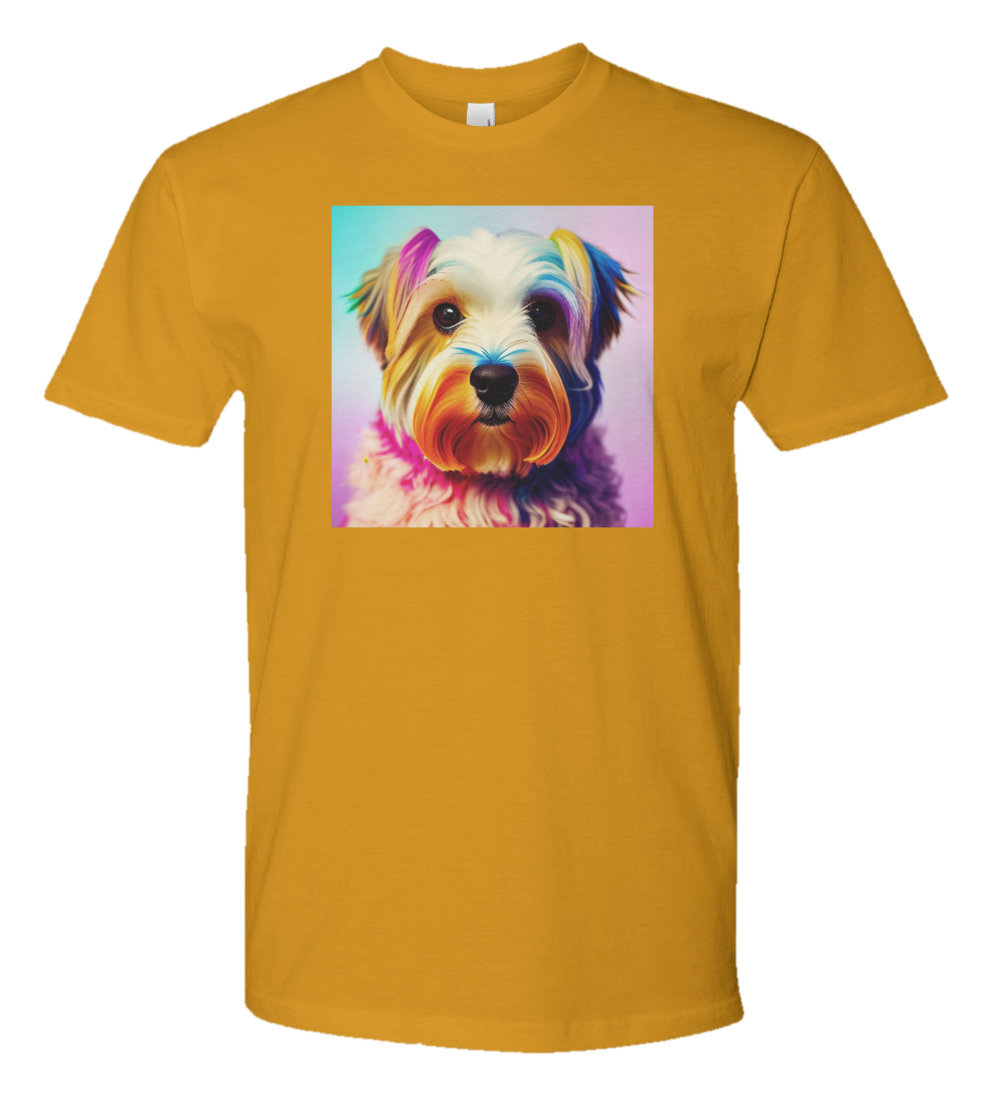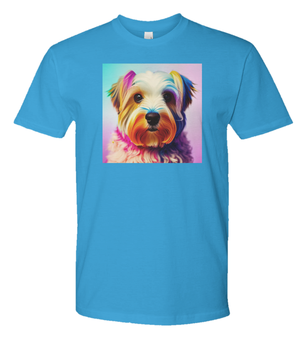 Get ready to stand out in style with this vibrant and eye-catching t-shirt! Featuring a colorful Maltese dog face adorned with playful paint splatters, this design is both whimsical and artistic. It's the perfect statement piece for any dog lover or art enthusiast. The intricate details of the dog's face combined with the bold splashes of color create a unique and dynamic look that is sure to turn heads wherever you go. Don't miss out on adding this fun and fashionable tee to your wardrobe!