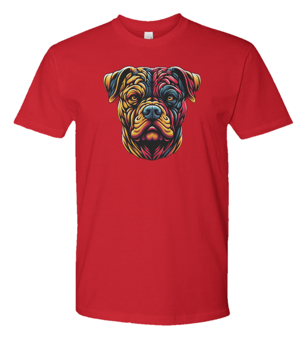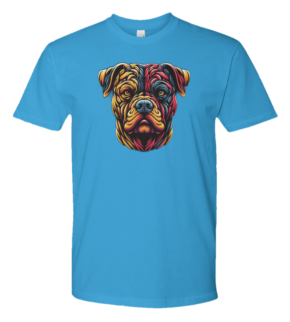 The t-shirt boasts a striking and captivating pit bull dog face print on the front, highlighting the distinctive traits of this beloved breed. The vibrant and lively colors in the design bring a burst of color to your ensemble. The meticulous attention to detail perfectly captures the essence of the pit bull's expressive eyes, powerful jawline, and unique features. Elevate your style with this bold and eye-catching statement piece.