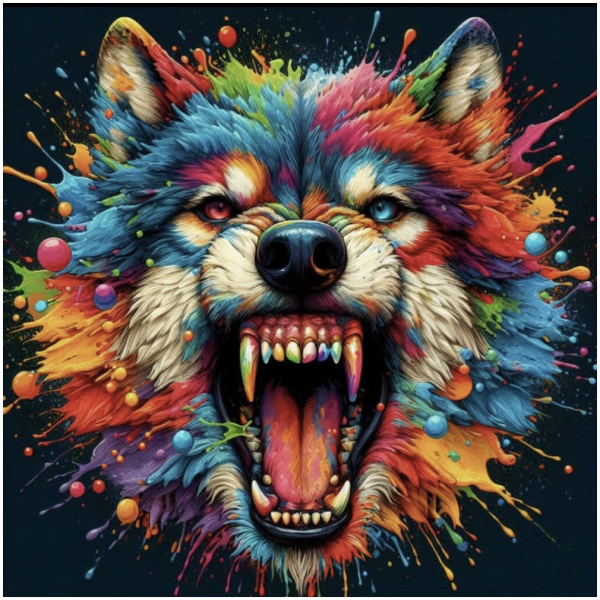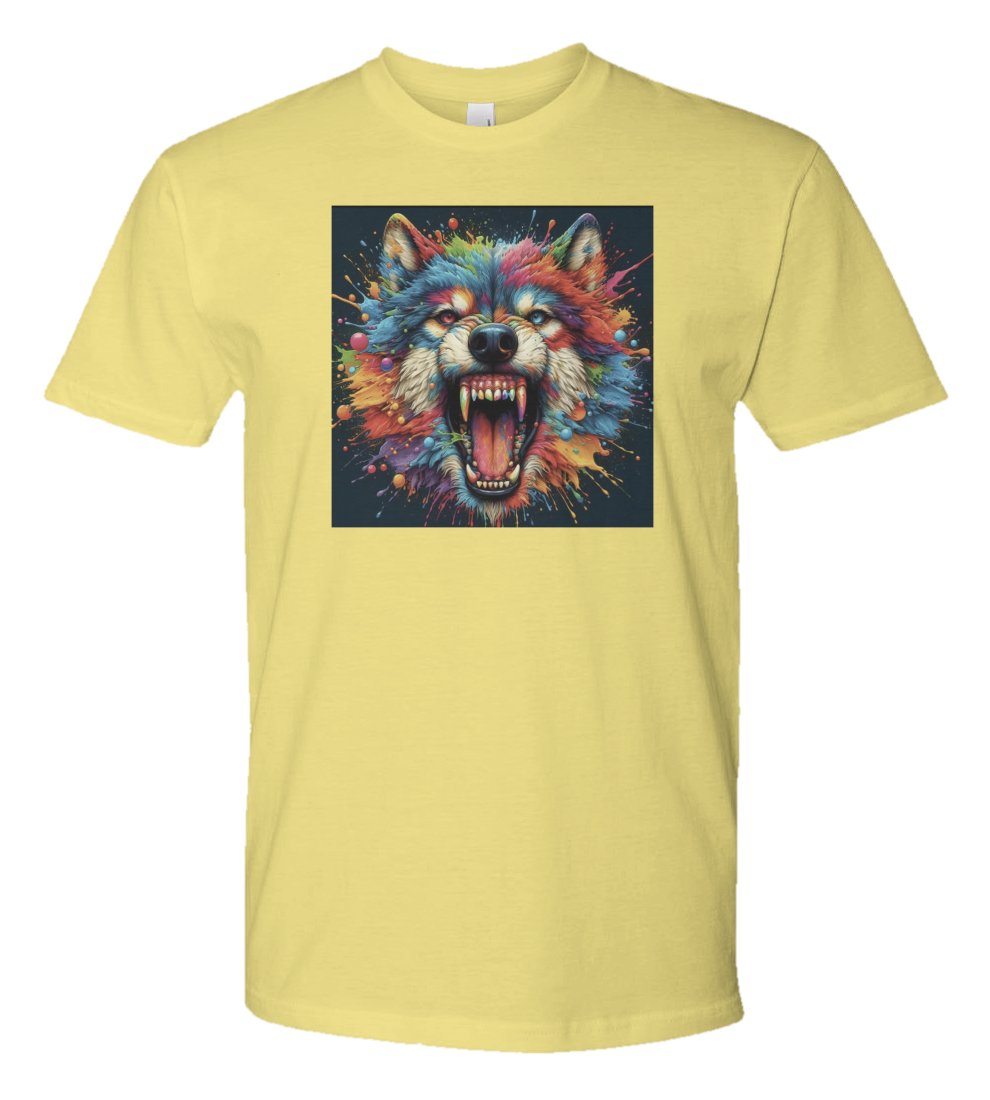 The wolf face featured on this t-shirt is exquisitely portrayed, perfectly capturing the essence of this magnificent creature. The intricate details of the wolf's fur and the intensity in its eyes create a captivating design that is sure to turn heads. The playful addition of colorful paint splatters adds a modern twist to the overall look, making it a versatile piece that can be styled for any occasion. This t-shirt is a true statement piece that effortlessly combines elegance and edge.