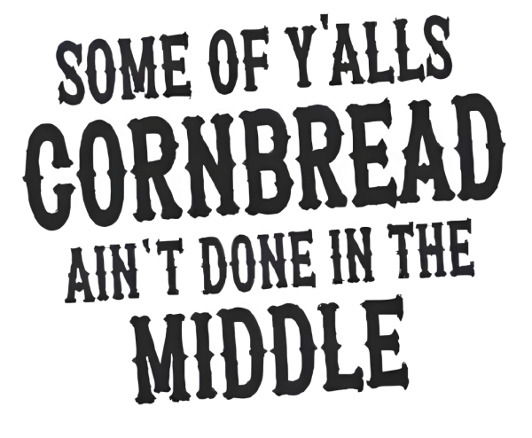Bless your heart but some of yalls cornbread just aint done in the middle. This tee serves up southern charm with a side of unapologetic shade perfect for family cookouts, porch sittin, or letting people know (without actually saying it) that youve clocked their nonsense. Wear it to stir the pot, get a laugh, or just flex your down-home sass. Its the ultimate gift for anyone fluent in sarcasm and sweet tea.