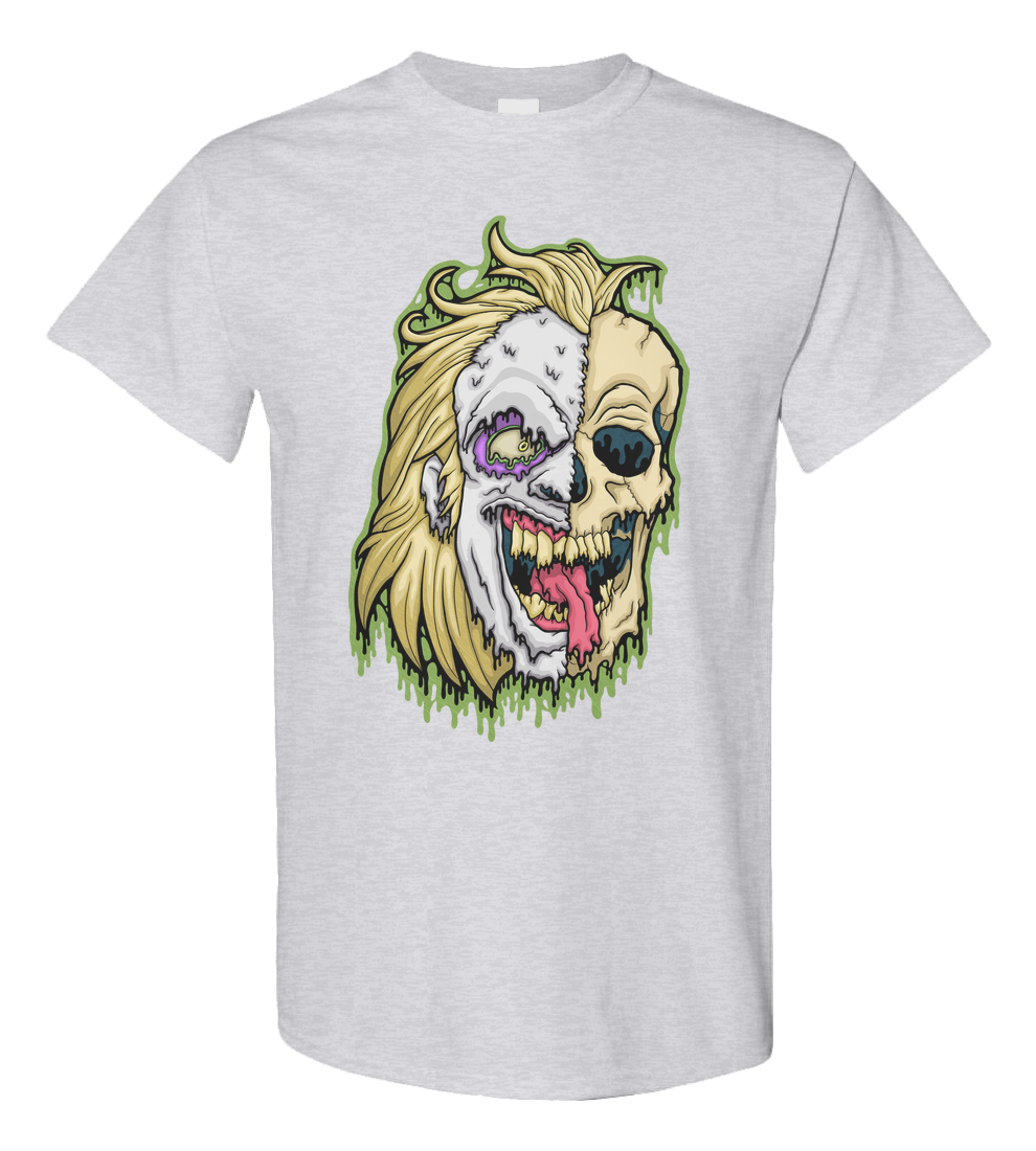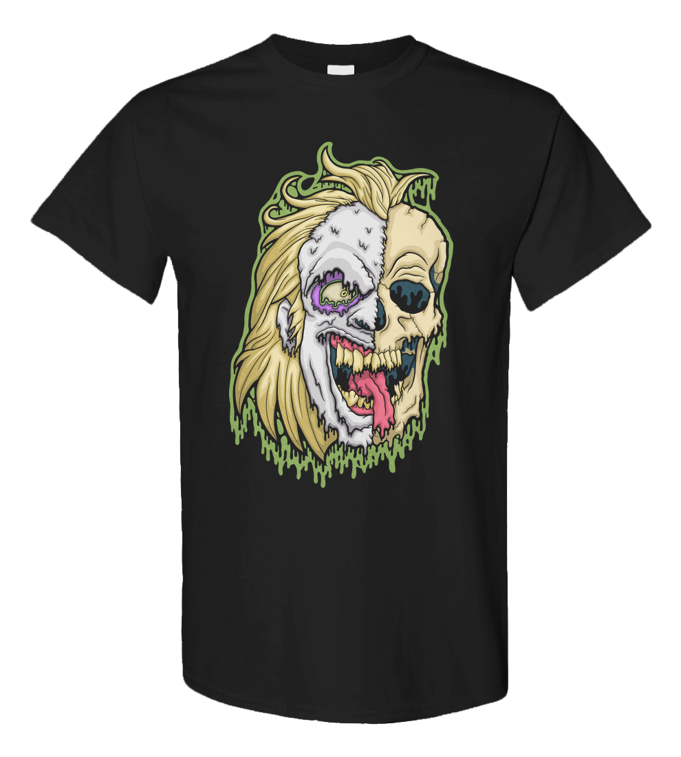 Its weird, loud, and unapologetically fun, perfect for horror fans, nostalgic movie lovers, and anyone who embraces the strange and unusual. Whether you see it as a pop culture remix, a love letter to horror comedy, or simply a badass skull illustration, this design brings the afterlife to life in full color.