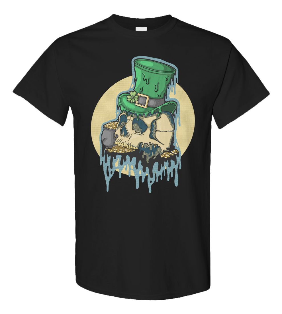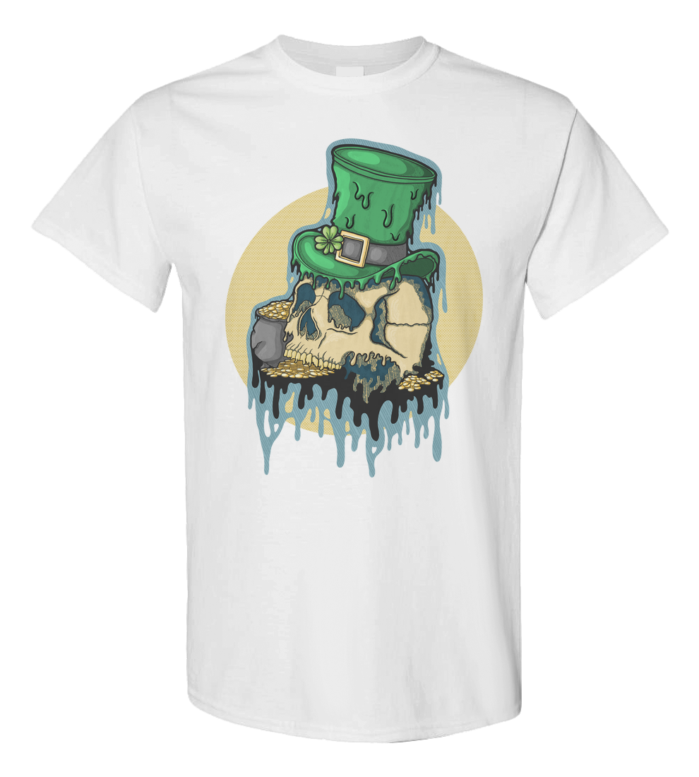Every element, from the shamrock tucked in the hat to the pile of gold coins, was sketched by hand before I brought it to life with bold colors. Its perfect if you want something seasonal that still carries that unmistakable skull art edge.