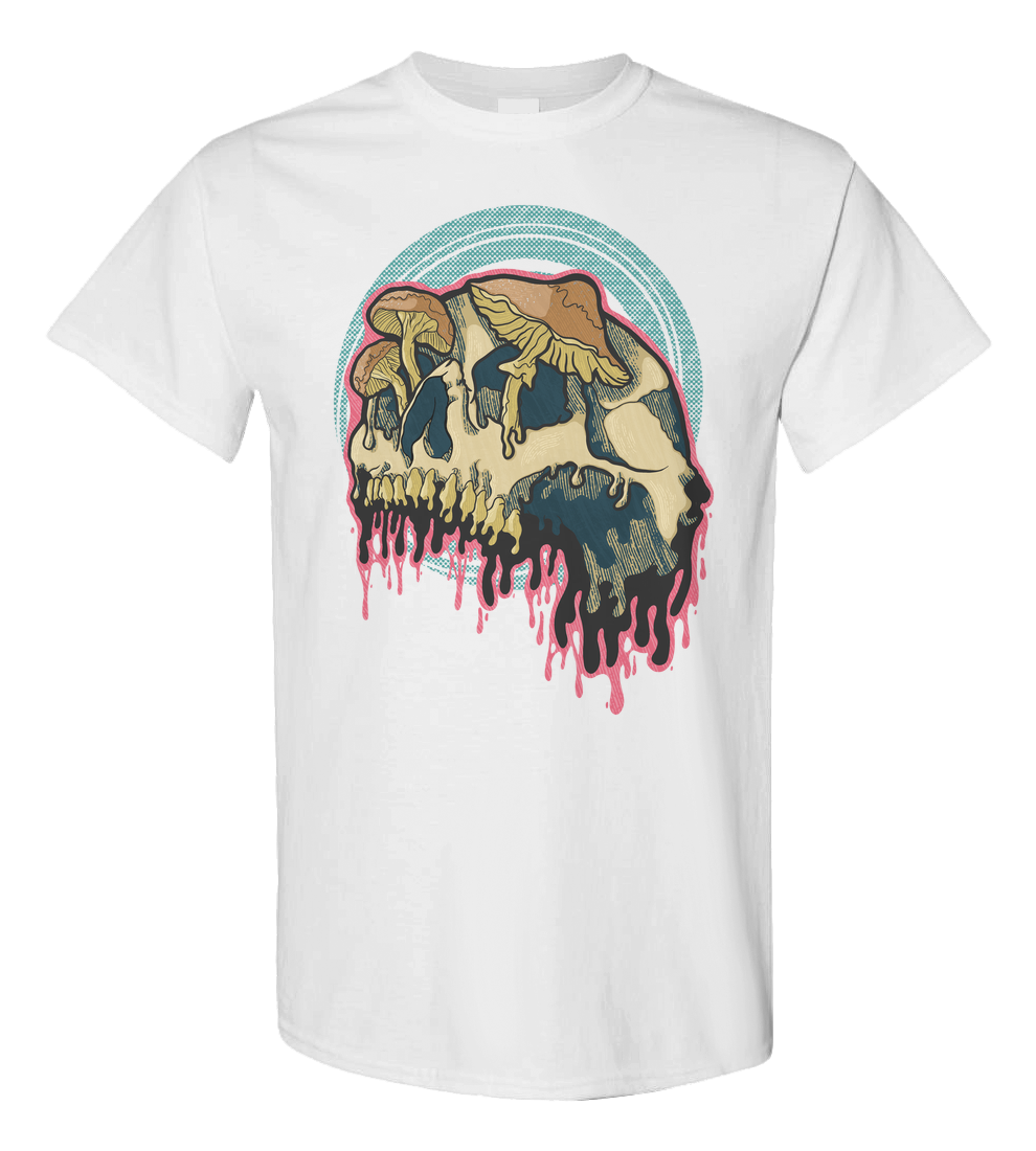 This was actually the very first drippy skull I ever drew, and it still holds a special place in my collection. I wanted to merge the organic, earthy feel of mushrooms with the eerie presence of a skull, letting them grow together as if nature was reclaiming the bones.