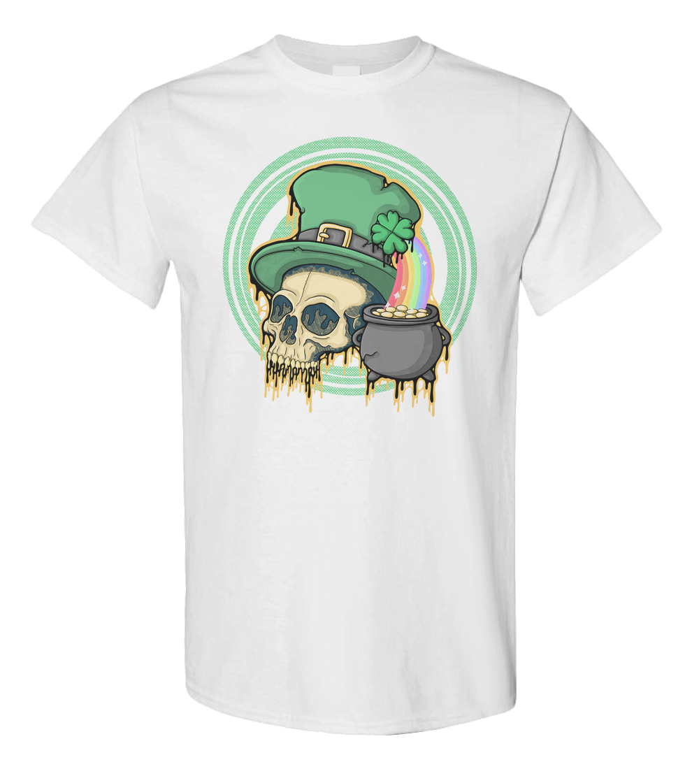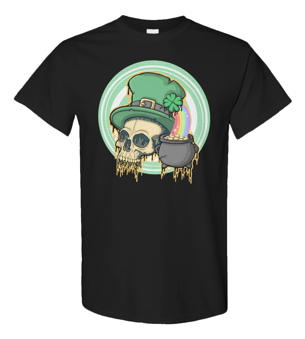 This design was a blast to draw, I wanted to take the fun, festive vibe of St. Patricks Day and twist it into my drippy skull style. From the oversized green hat and shamrock to the rainbow pouring into a pot of gold, its a playful mix of creepy and colorful.