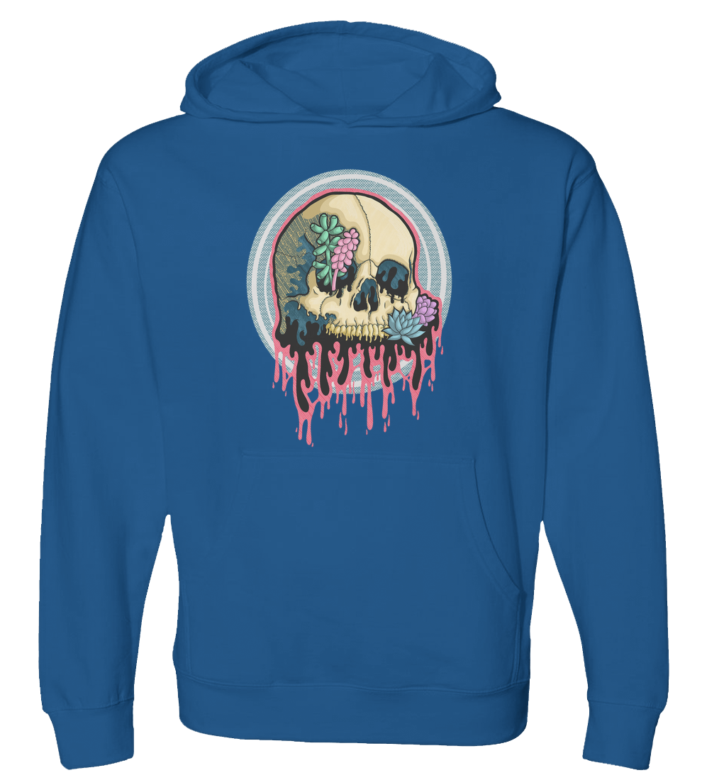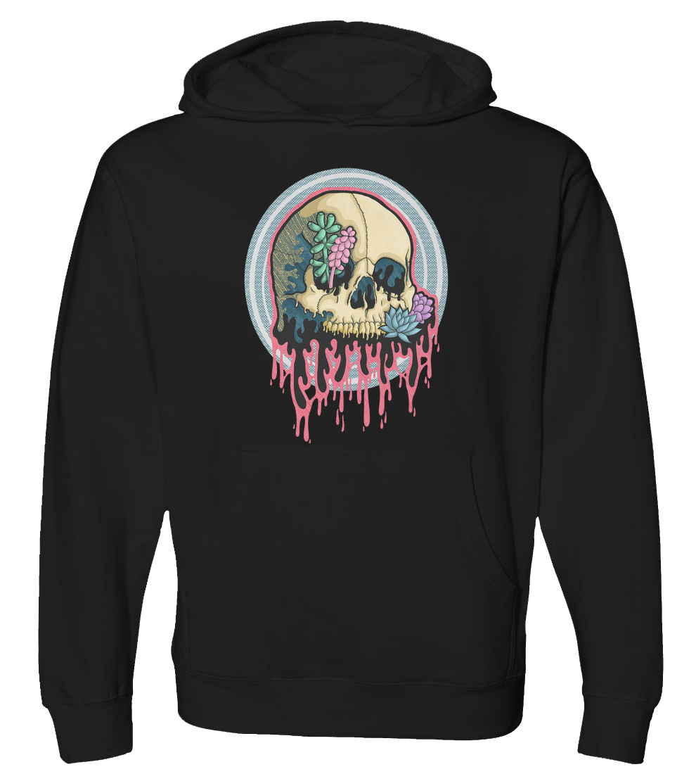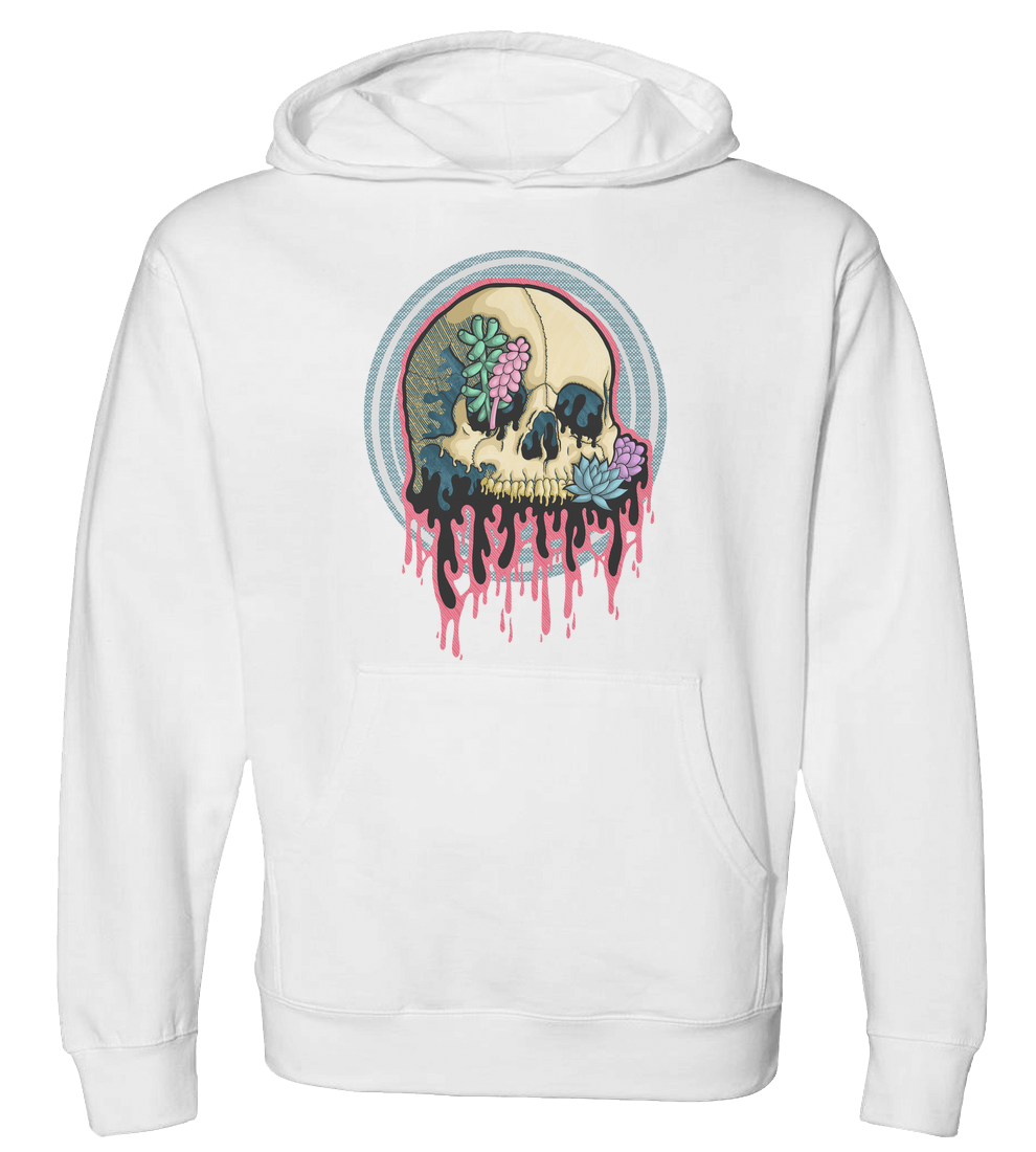 This design grew straight out of my sketchbook, literally. I wanted to bring the soft beauty of succulents together with the darker edge of a skull, tied together in my signature drippy style. The mix of pastel colors and bone gives it a look thats both eerie and vibrant, like life sprouting from decay.
