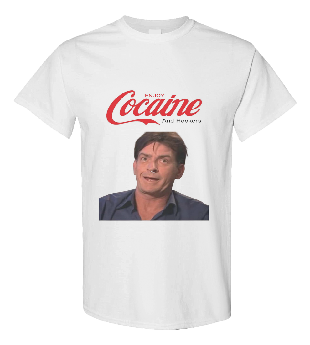 This shirt features the bi-winning warlock himself (Charlie Sheen) with a line of cocaine under his nose. He's zooted up and higher than the moon. Stay winning with this classic.