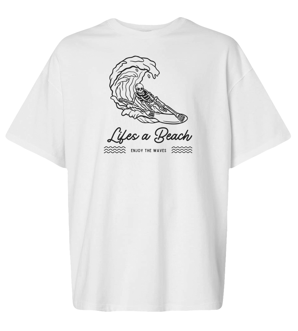 Lifes a Beach Enjoy the Waves! This tees for the ones who know lifes all about riding the wave, even when you're just a skeleton. With a killer surf-style font and a laid-back vibe, this shirt is your perfect companion for chill days by the shore or catching that beachy feel all year long. Throw it on, feel the breeze, and enjoy the ride.