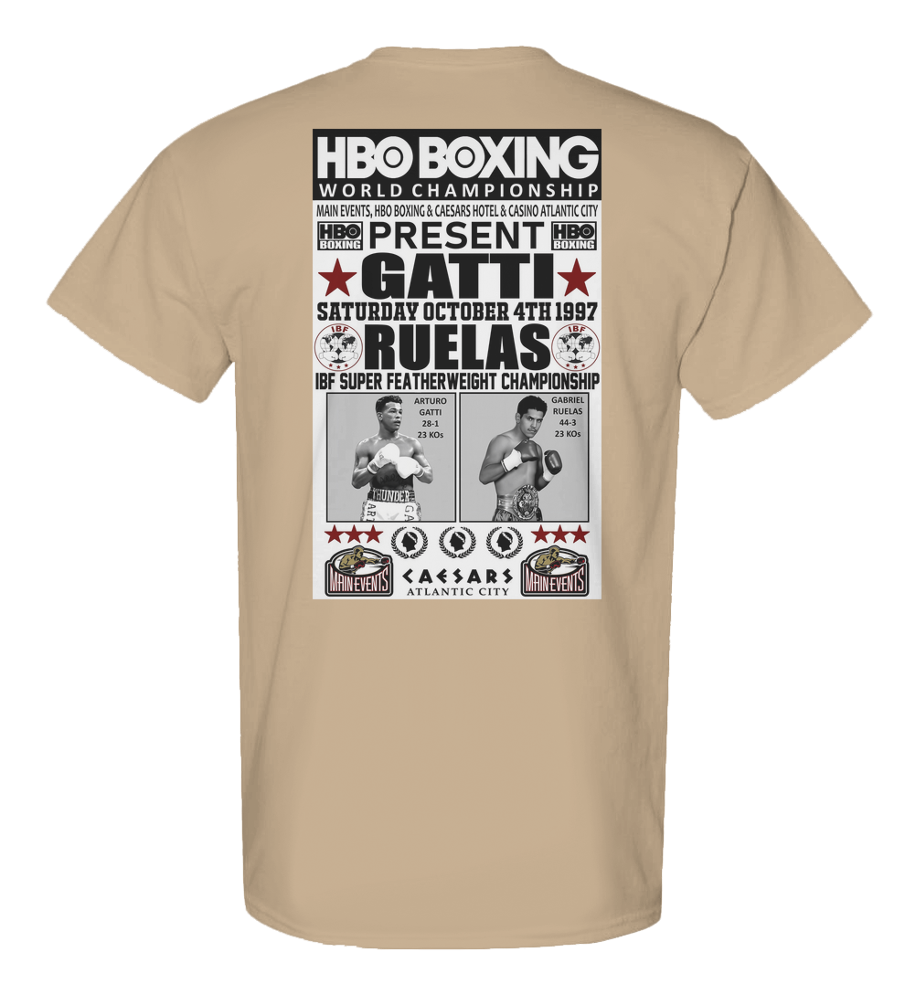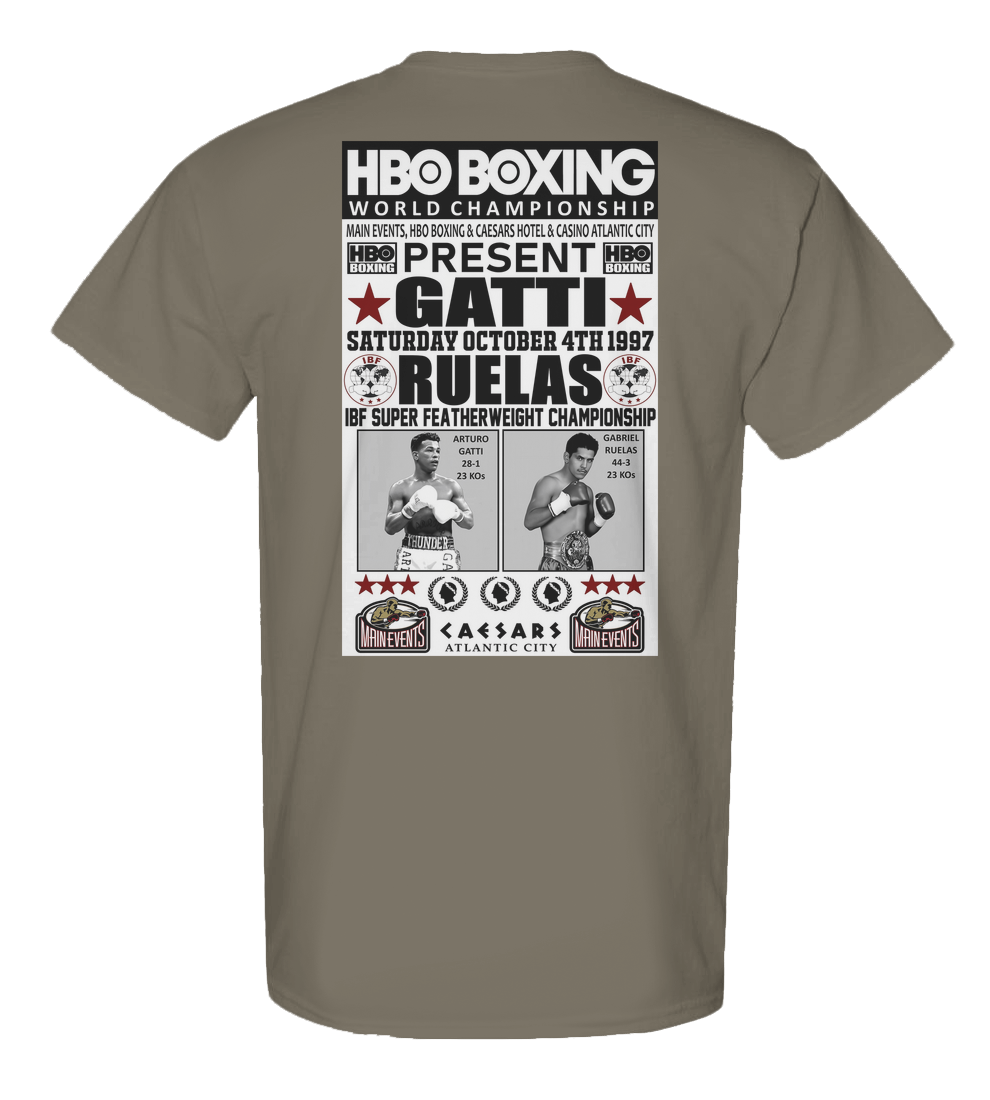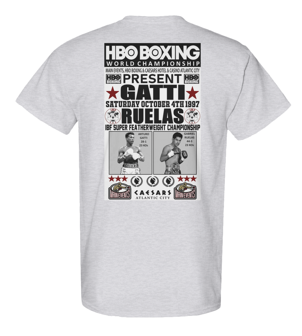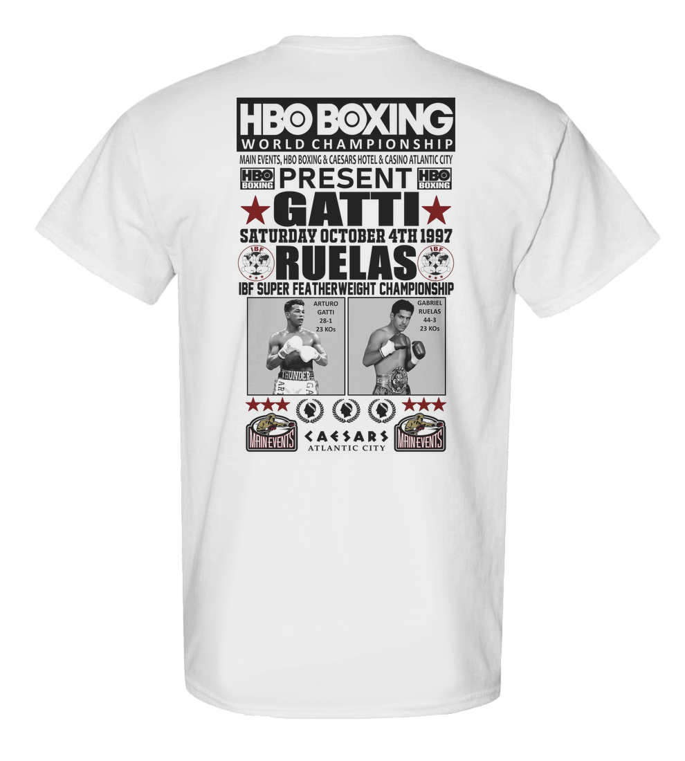 Arturo Gatti (28-1, 23KOs) met Gabriel Ruelas (44-3, 23 KOs) on Saturday, October 4th, 1997 for the IBF Super Featherweight Championship at Caesars Hotel & Casino In Atlantic City, New Jersey. The match was televised by HBO.