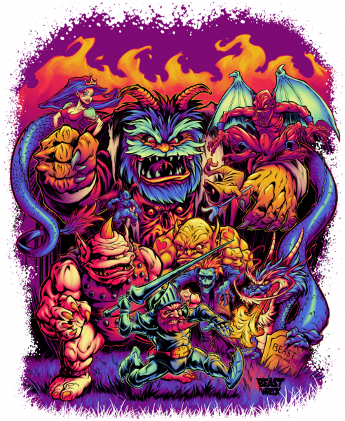 One of the hardest and most frustrating video games ever made for the Nintendo Entertainment System, Capcom's GHOSTS 'N' GOBLINS gets the Beast-makeover in this reworked version of the original game cartridge cover art.