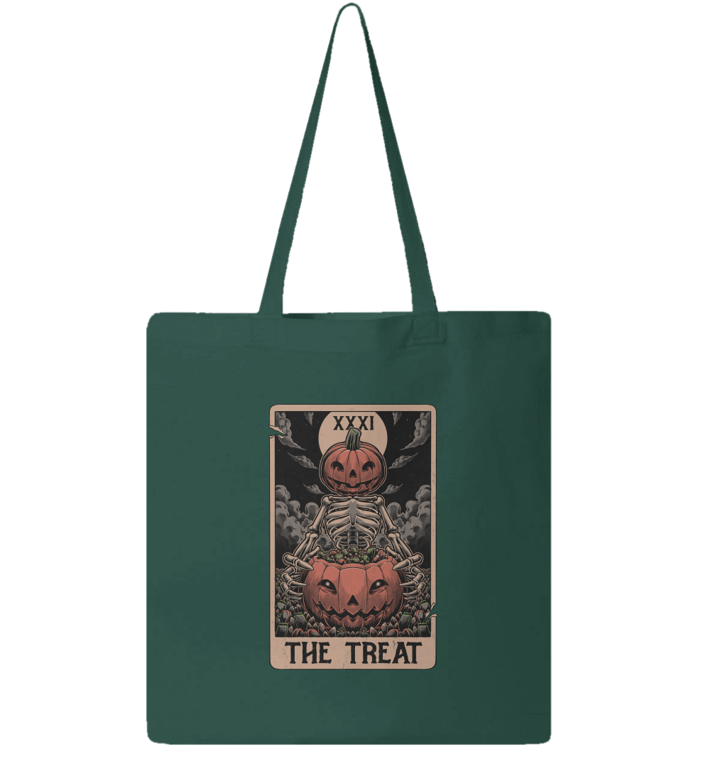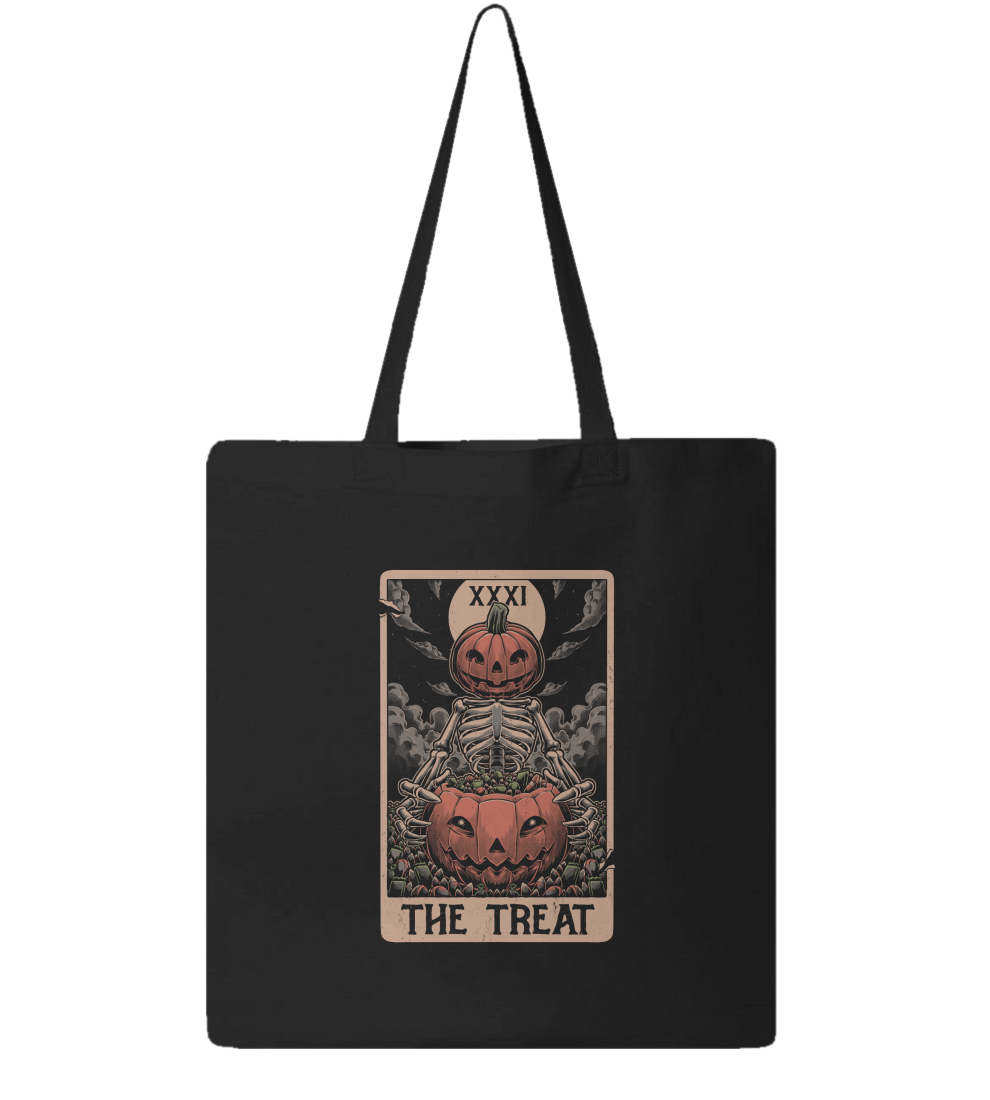 This cool and awesome t-shirt is perfect for those who love Halloween, trick and treats, tarot, black magic, and occultism. Featuring a skeleton with a pumpkin head surrounded with candies, with the number 31 and the quote "The Treat".