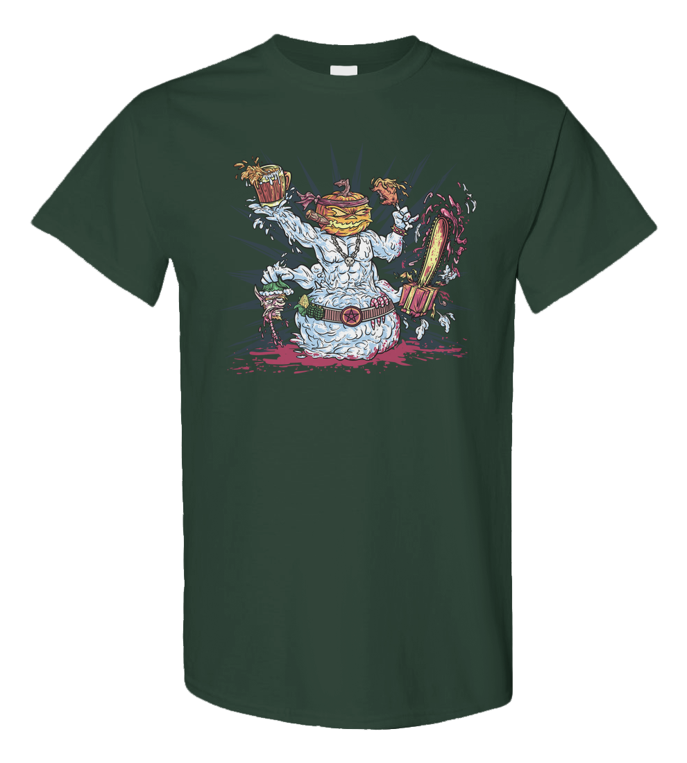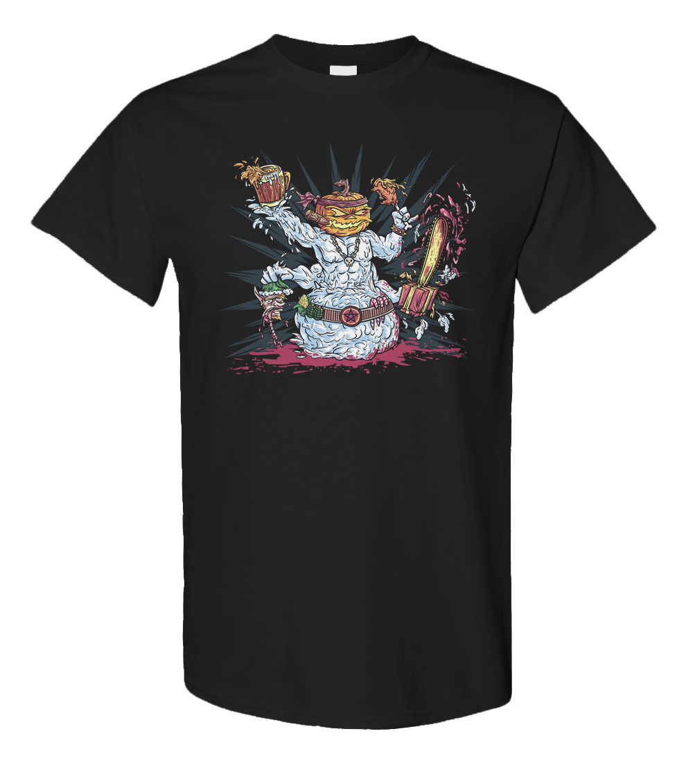 Sorry kids.. looks like Ol' Frosty has been brutally murdered. All your favorite Holidays like Halloween, Christmas, and Thanksgiving are now mangled and merged into one unforgettable gory design. Spark some laughs, confuse your friends, or simply show off your love for all things chaotic and random.