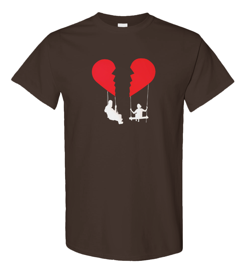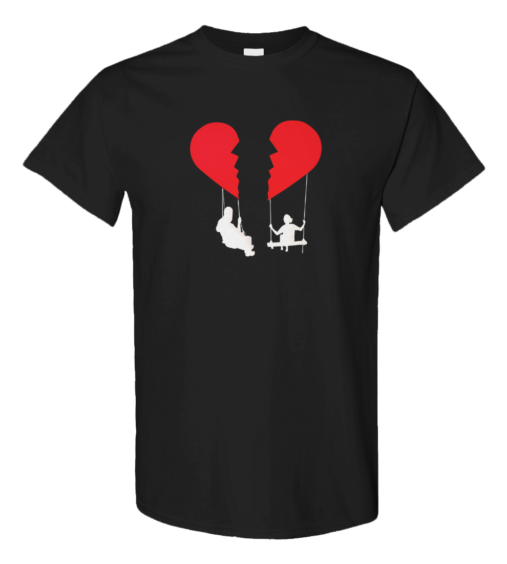Silhouette couple riding hot air balloon shaped broken heart's pieces