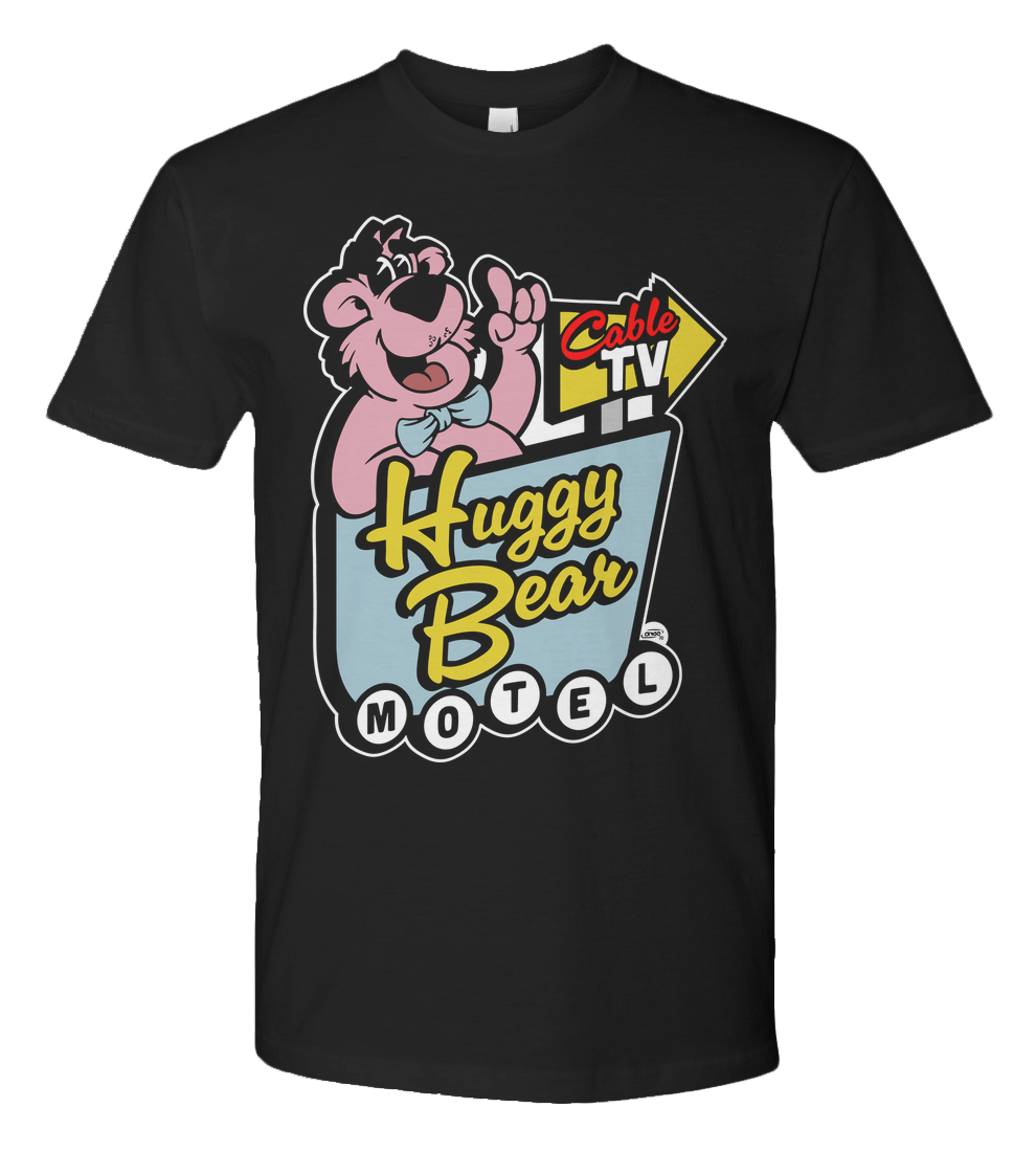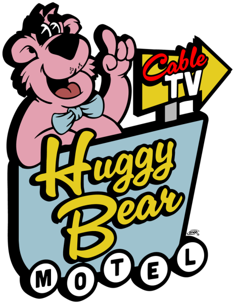 A nostalgic nod to those roadside motels with questionable carpets and unforgettable charm. The Huggy Bear Motel design brings that vintage neon-sign energy with a grinning pink bear, bold lettering, and just the right amount of retro weirdness. Perfect for anyone who loves old Americana, kitschy mascots, or the kind of motel that proudly advertises Cable TV like its a luxury.