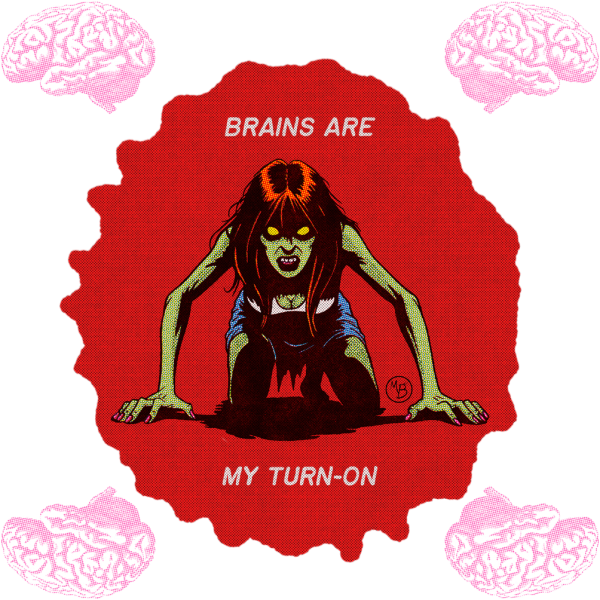 She's dead, she's hungry, and she's got a type. A little cheeky, a little creepy... this zombie pinup is all about brains and bad intentions.
