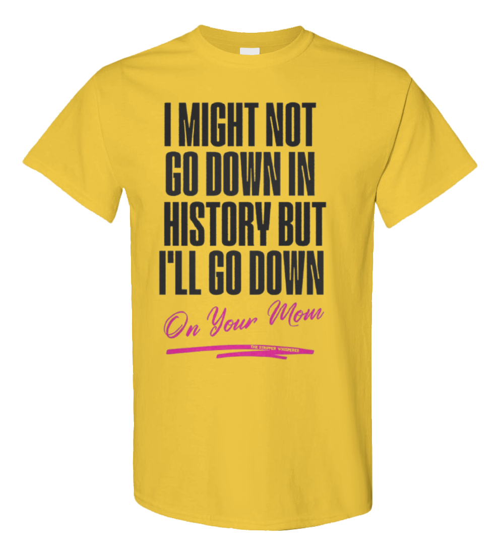 I might not go down in history, but i'll go down on your mom. That's not just a bold statement, it's a shirt too.
