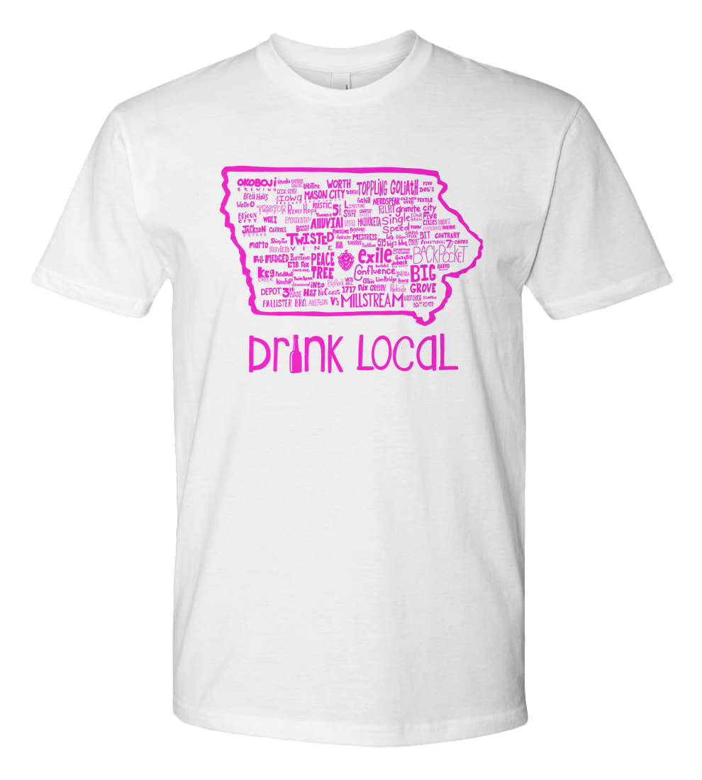 Show your Iowa pride one pint at a time! This bold Drink Local tee highlights Iowas thriving craft beer scene with a map packed full of local breweries. Whether youre bar hopping, brew touring, or just sipping at home, this shirt is the ultimate conversation starter for beer lovers. Because the best beer is brewed right here.