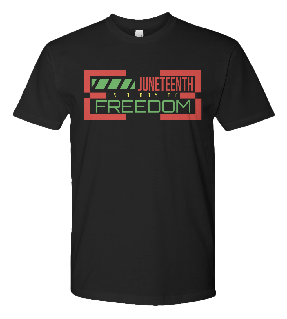 Embrace the spirit of freedom with this vibrant Juneteenth T-Shirt. Crafted on a premium Next level fashion Tee, this design bursts with the colors of liberation _red, Black and Green. The bold text, "Juneteenth is a day of Freedom," stands out, making a powerful statement.