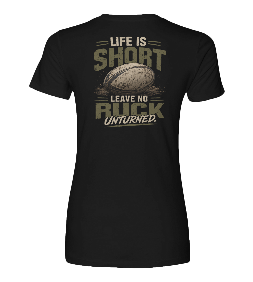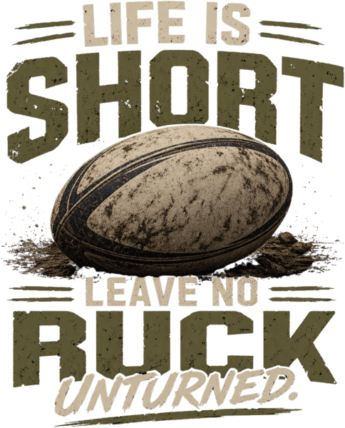 The back design features the bold Leave No Ruck Unturned graphic. It is gritty, relentless, and full of rugby attitude. Centered around a battle worn rugby ball and distressed typography, it captures the spirit of always showing up, putting in the work, and never backing down from a challenge.
