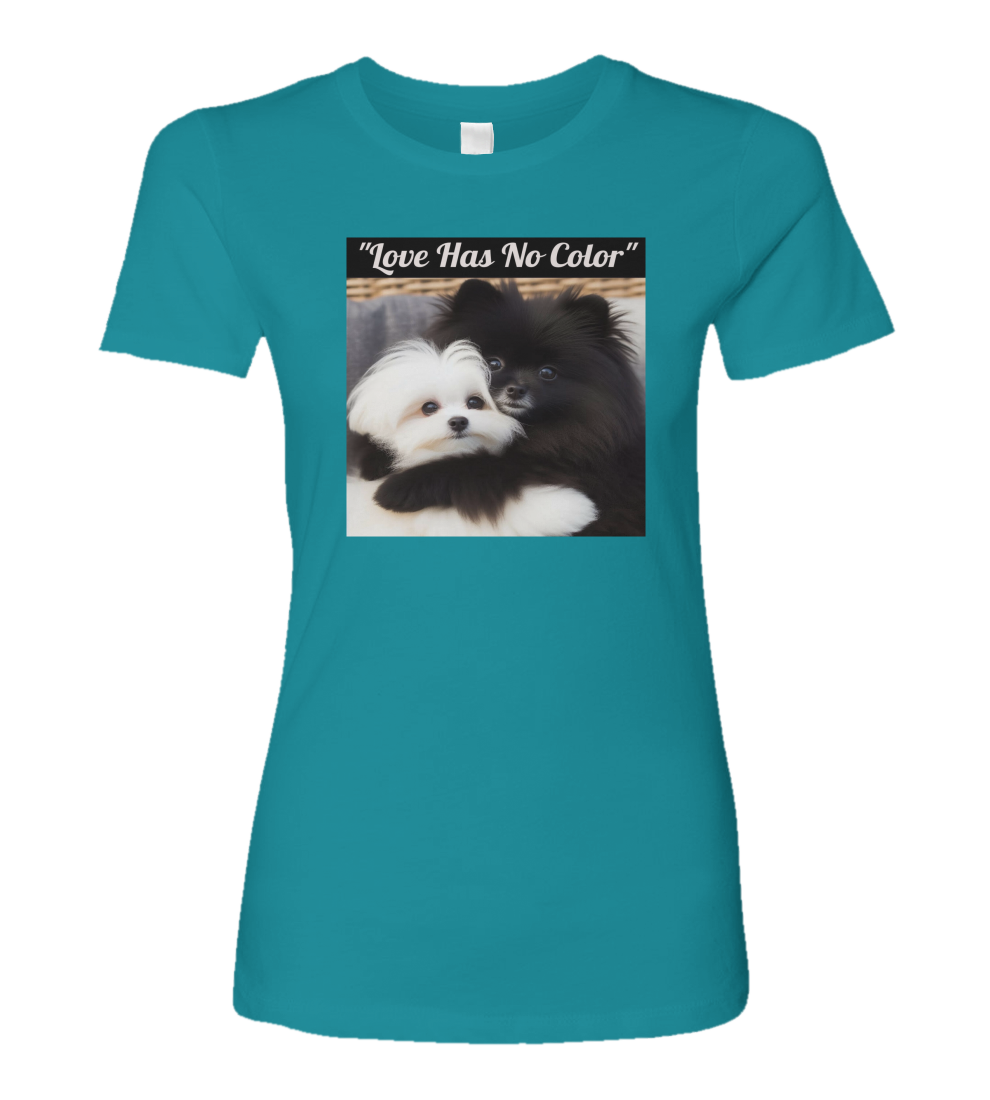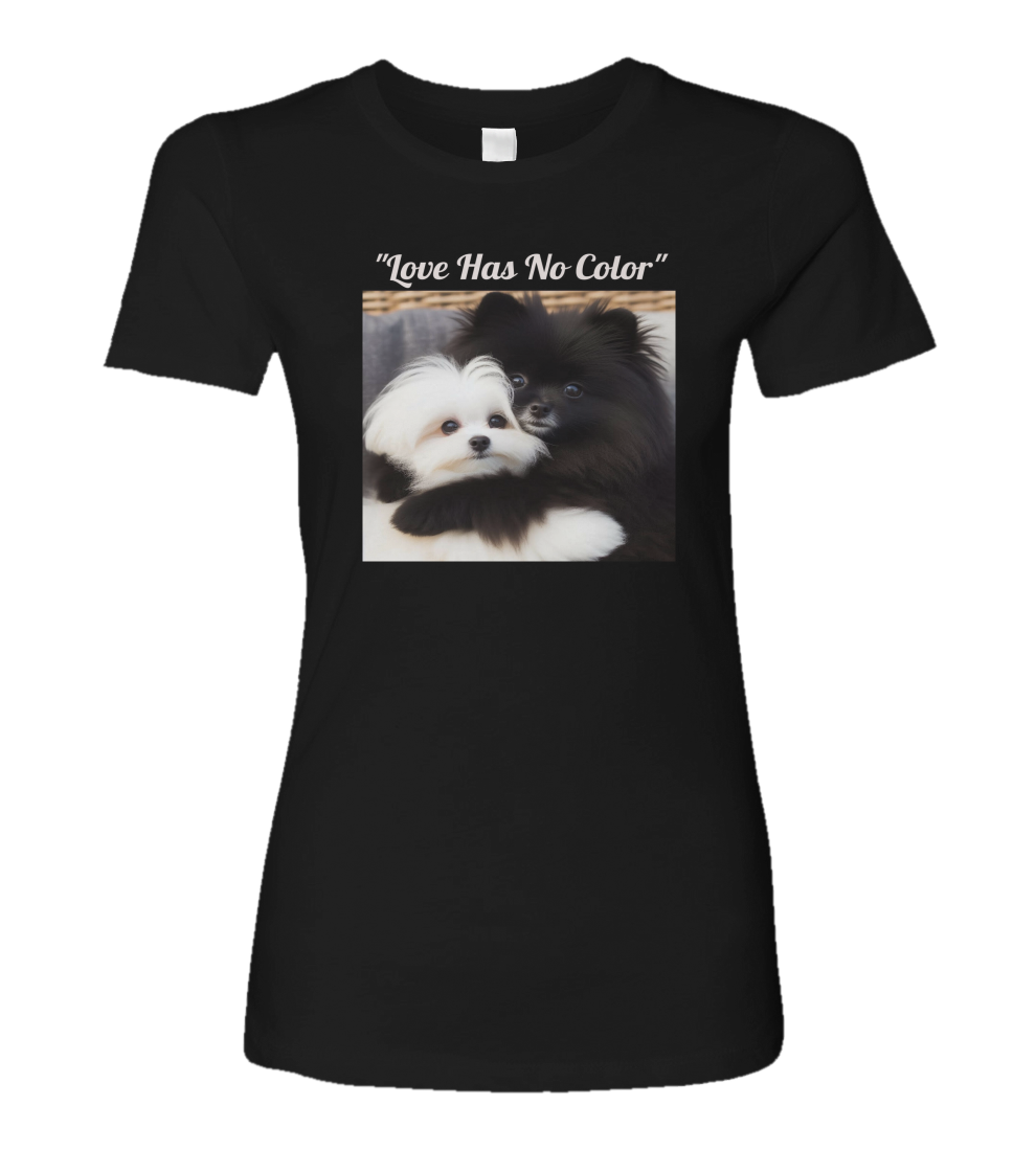 The powerful message of "Love Has No Color" on the t-shirt highlights the beautiful theme of love surpassing boundaries and differences. It serves as a poignant reminder that love is limitless and has the incredible ability to unite individuals of diverse colors, breeds, and backgrounds. This message is not only heartwarming, but also carries a profound and inclusive meaning that deeply resonates with people from all walks of life. Let's celebrate the power of love that knows no bounds!
