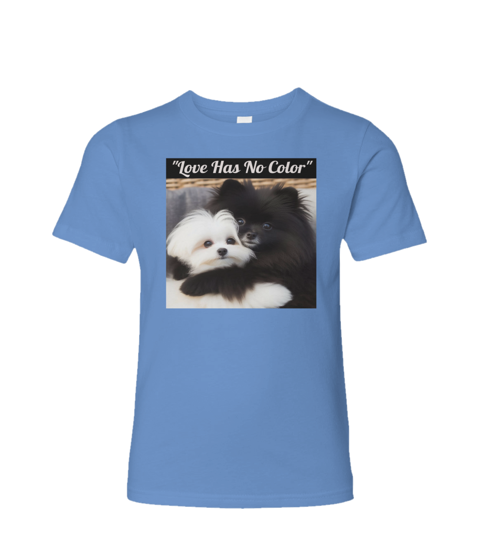 The powerful message of "Love Has No Color" on the t-shirt highlights the beautiful theme of love surpassing boundaries and differences. It serves as a poignant reminder that love is limitless and has the incredible ability to unite individuals of diverse colors, breeds, and backgrounds. This message is not only heartwarming, but also carries a profound and inclusive meaning that deeply resonates with people from all walks of life. Let's celebrate the power of love that knows no bounds!