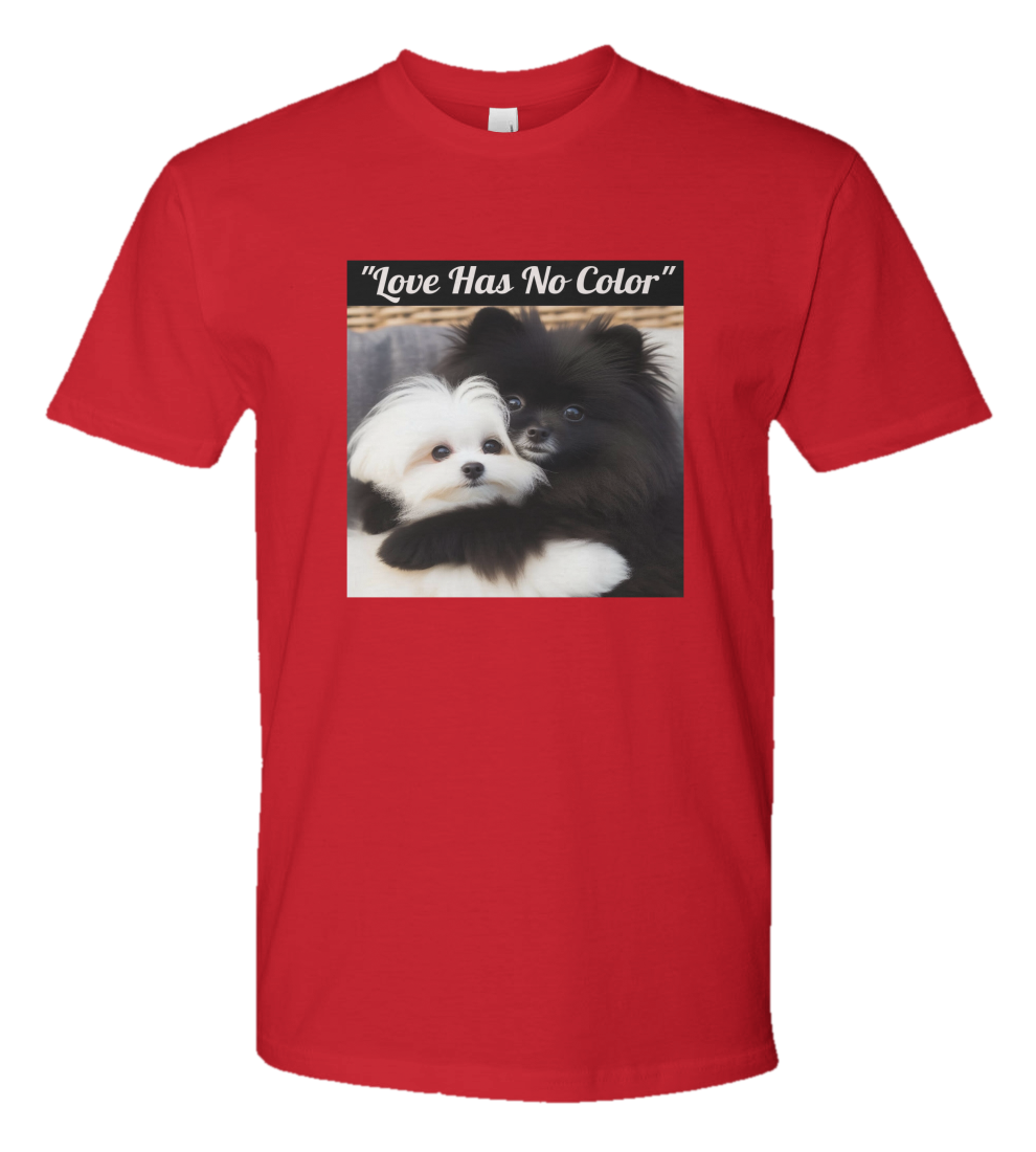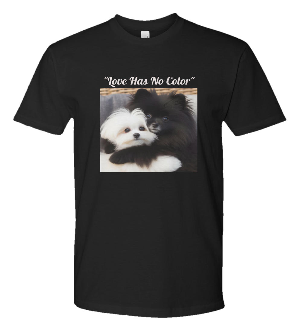 The powerful message of "Love Has No Color" on the t-shirt highlights the beautiful theme of love surpassing boundaries and differences. It serves as a poignant reminder that love is limitless and has the incredible ability to unite individuals of diverse colors, breeds, and backgrounds. This message is not only heartwarming, but also carries a profound and inclusive meaning that deeply resonates with people from all walks of life. Let's celebrate the power of love that knows no bounds!