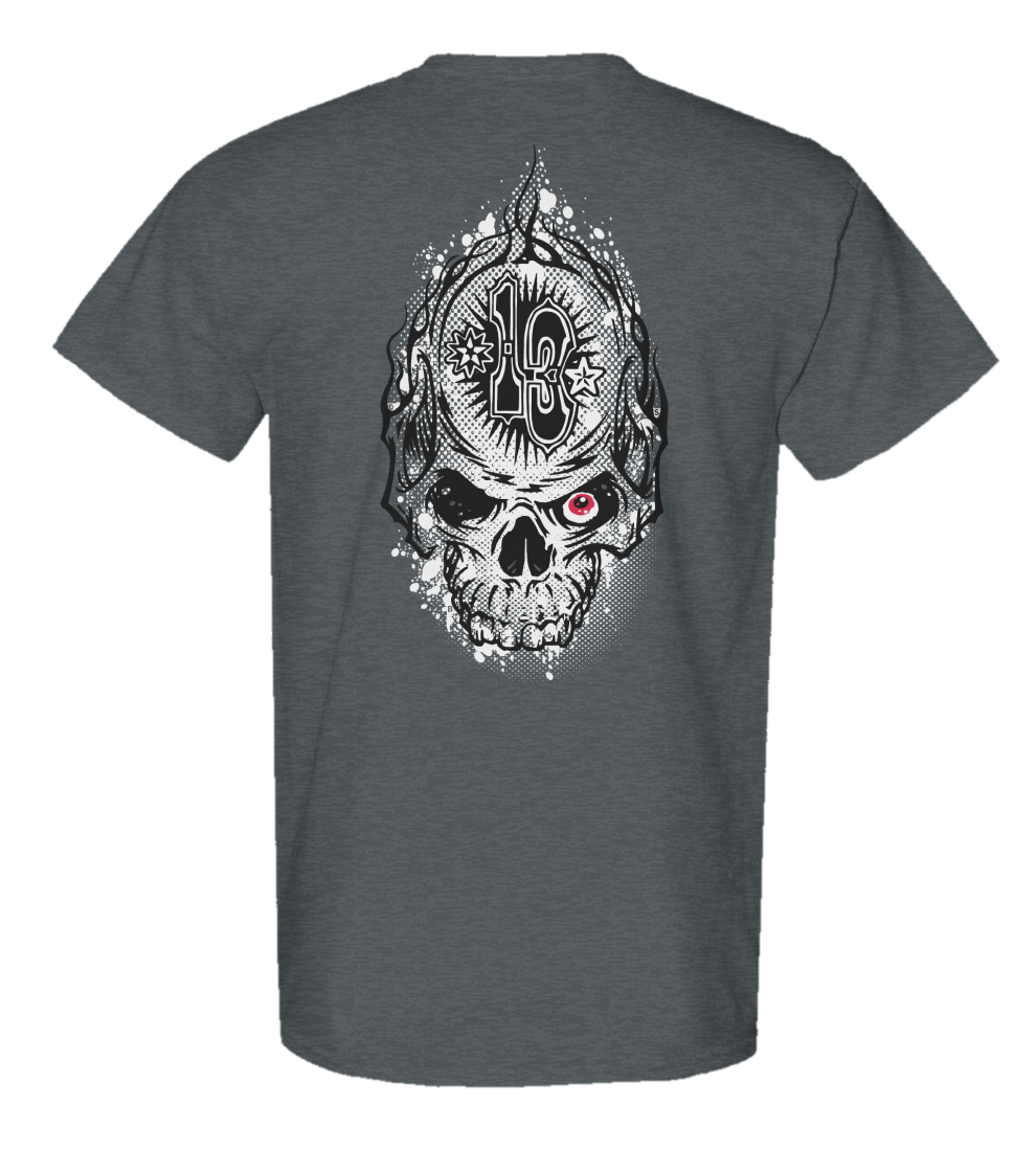 There's a lot to unpack here with our Lucky #013 Tee by the artist X-W: Dirty Harry, Frank Sinatra...an elevator button you'll never get to push... We struggled getting the color of the the eyeball just right, but as our friend Chris S. said, "...that does look like what I assume AI robots wanting to kill me will look like." So I guess we nailed it.