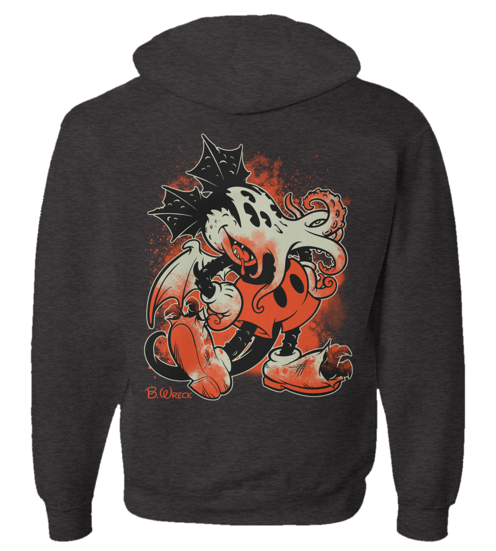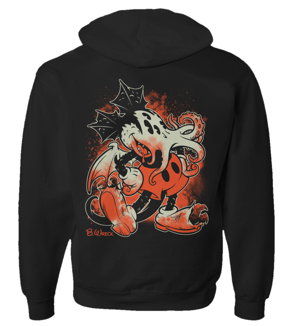 Hiya, folks! In a clever scheme to better equip humanity to embrace and serve the Elder Gods, an adorable mascot was created to soften the blow and sell heaps of merchandise. If ol' Walt weren't awaiting resuscitation in the secret bowels of "The Happiest Place on Earth", he'd be spinning in his grave like an electrified top! Anyway, let's give a big warm welcome to Mickthulhu Mouse and embrace those tendrils of insanity tickling at the back of our brains.