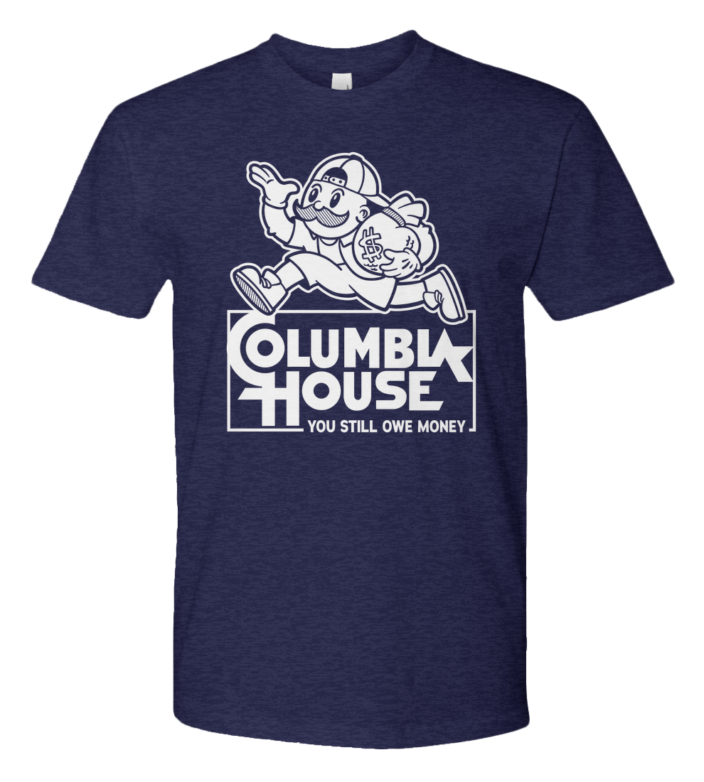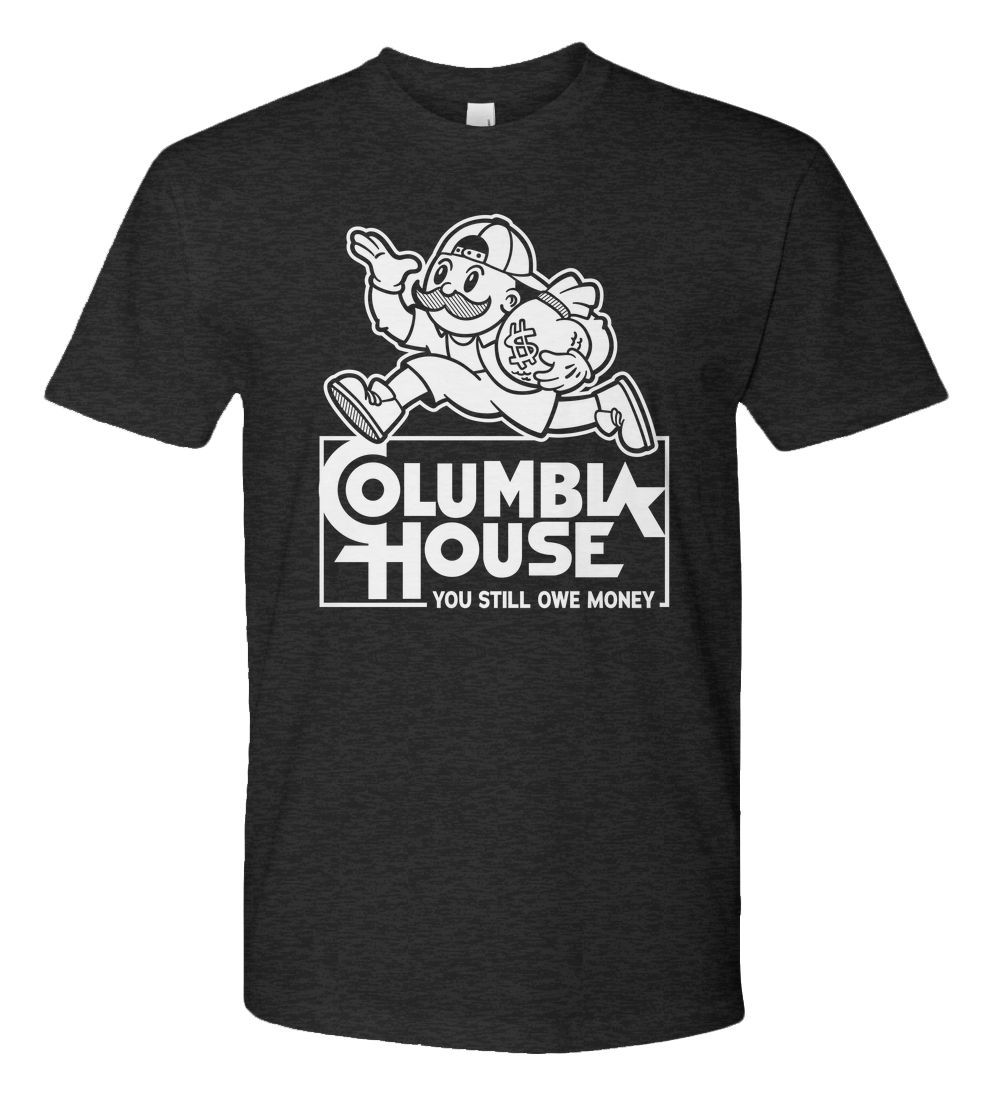 Flash back to the golden age of mail-order CDs, where you got 12 albums for a penny and a lifetime of guilt. This hilarious and nostalgic tee features a cartoon style tribute to the legendary Columbia House hustle, complete with a mischievous character making a break for it with money bag in hand and debt hot on his heels.