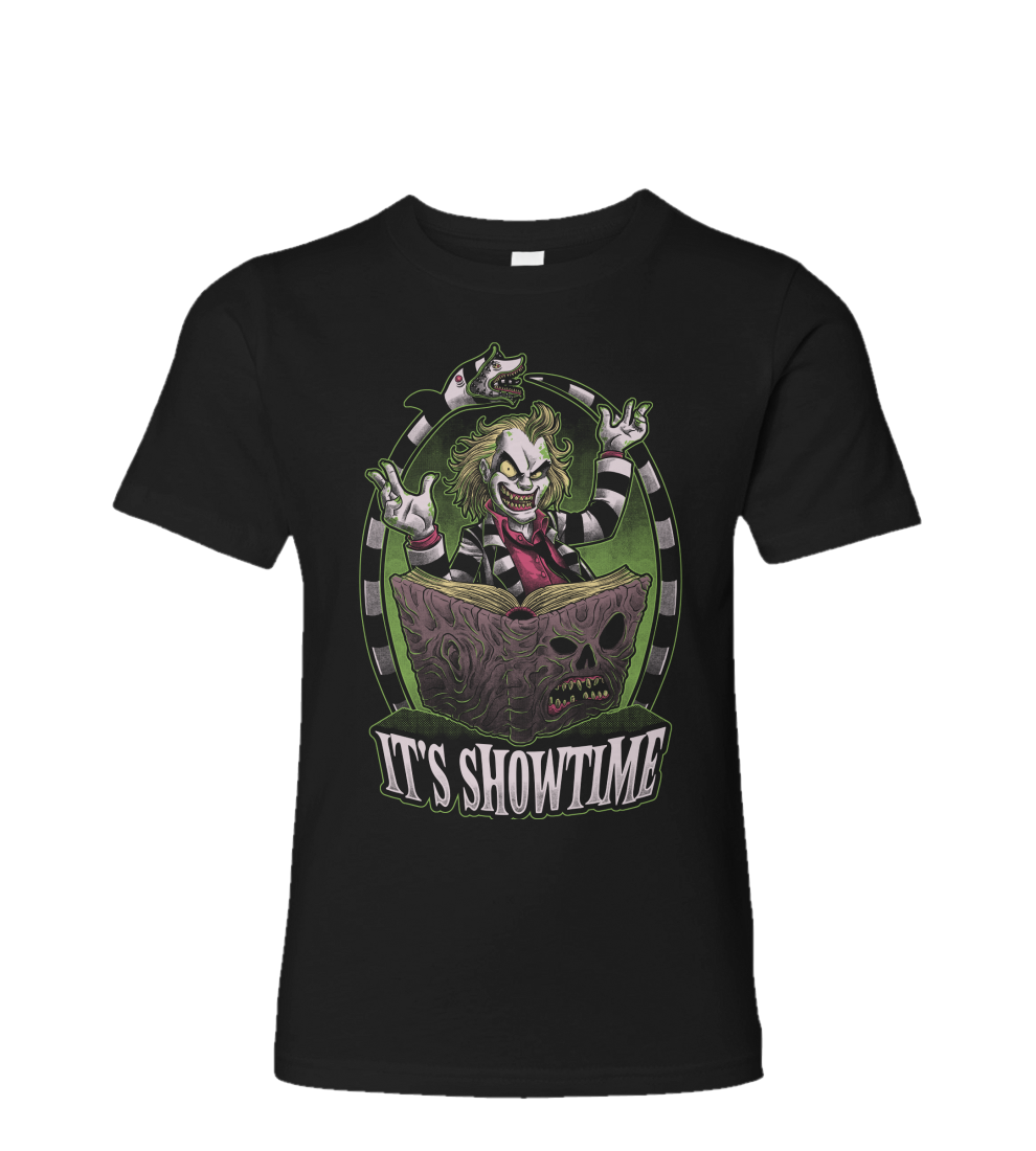 This cool and funny t-shirt is perfect for those who love TV shows, ghost stories, summoning demons, and classic vintage horror movies. Featuring a dead exorcist with the Necronomicon, the book of the dead, making a ritual with the quote "It's Showtime".