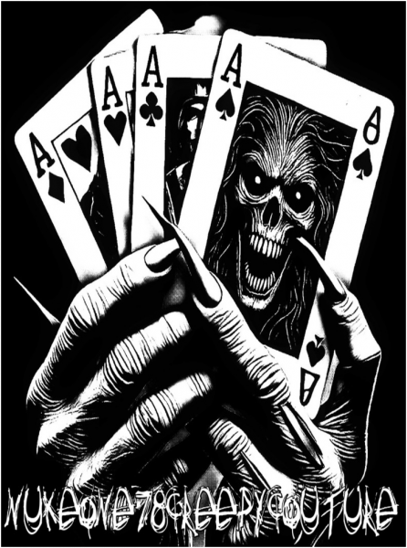 #hellofaces #playingcards #demonhands #demons #skulls #skeleton #undead #creepy #dealwiththedevil #supernatural #evilspirits #spooky #possessed #scary #monochrome #nukeone78creepycouture #tshirtprintshop #tshirtstyle #tshirtdesign #horrorfanatic #horrorfans #horrorobessed #horrormovies #independenthorrorapparel #horrorfilms #darkart #gritty #abstract #creative #nk1-78cc