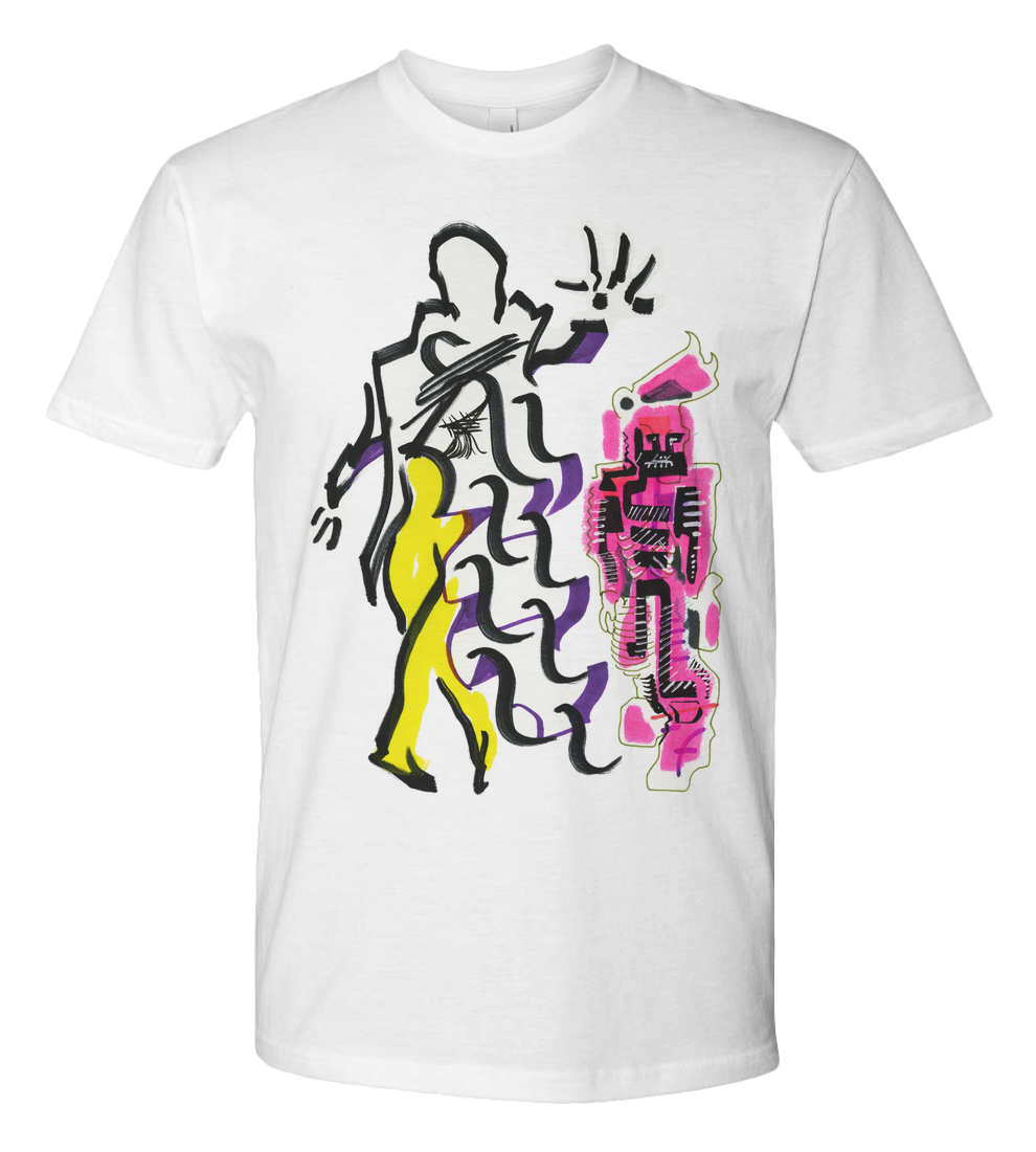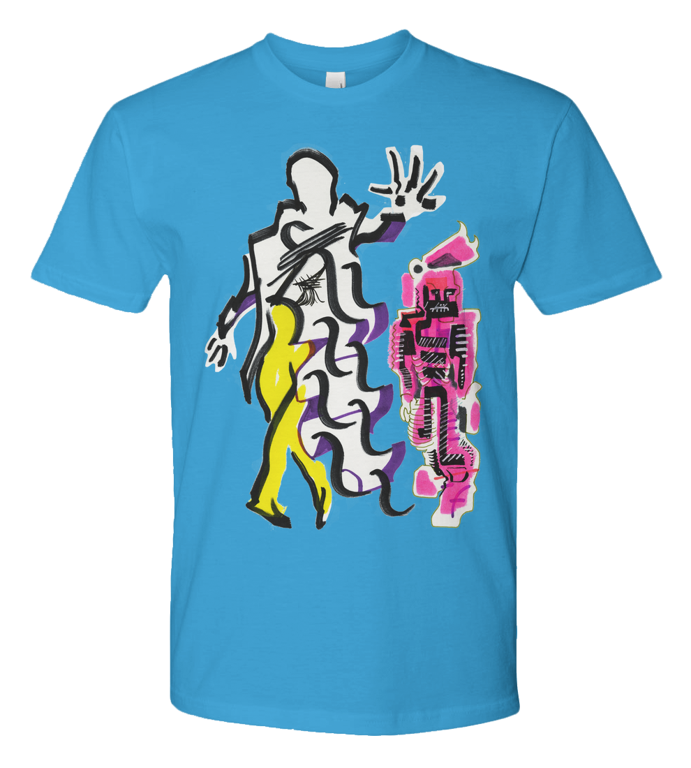 Note the flowering exuberance of my regal gown, and the determination to keep the King of T-Shirts out harms way exhibited by steadfast Magenta security.