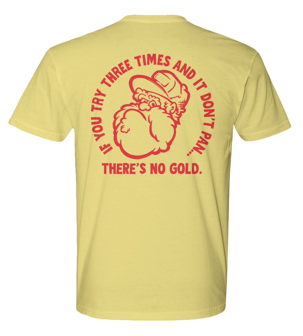 Every friend group has that guy with a drink in his hand and a nugget of questionable wisdom. This print captures that moment the kind of advice you hear halfway through a long night with good friends: If you try three times and it dont pan theres no gold.