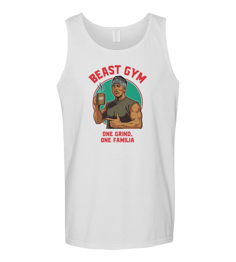 The Beast Gym One Grind, One Familia tank top represents what Beast Gym is all about showing up for each other, pushing through the grind together, and building a community where everyone grows stronger.