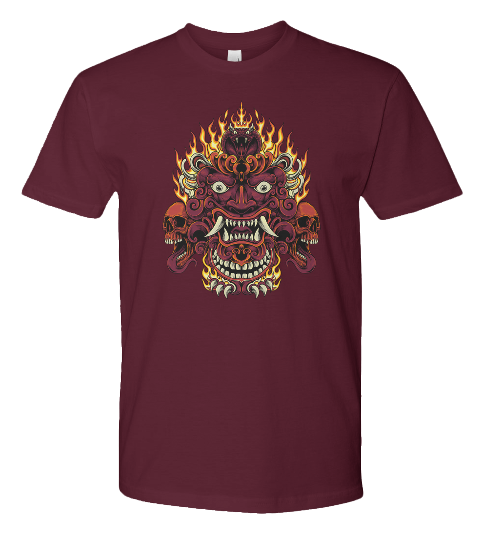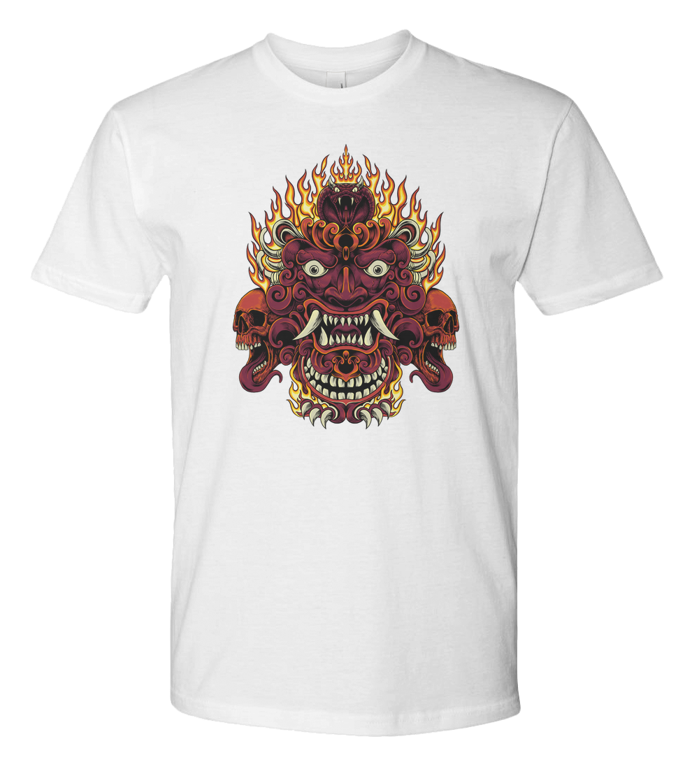 Oni mask with two skulls emitting fire