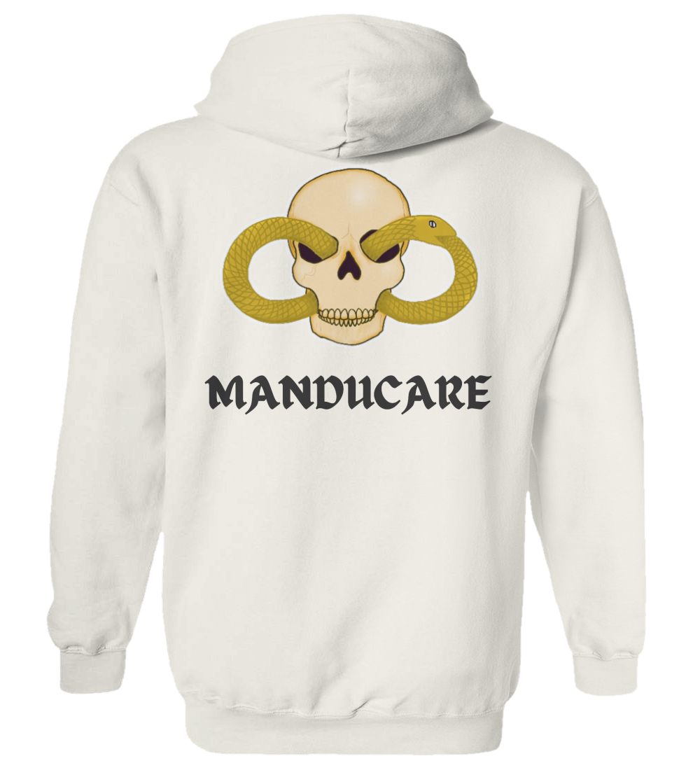 Ouroboros Skull "MANDUCARE" Graphic Hoodie design #1 - black, cream